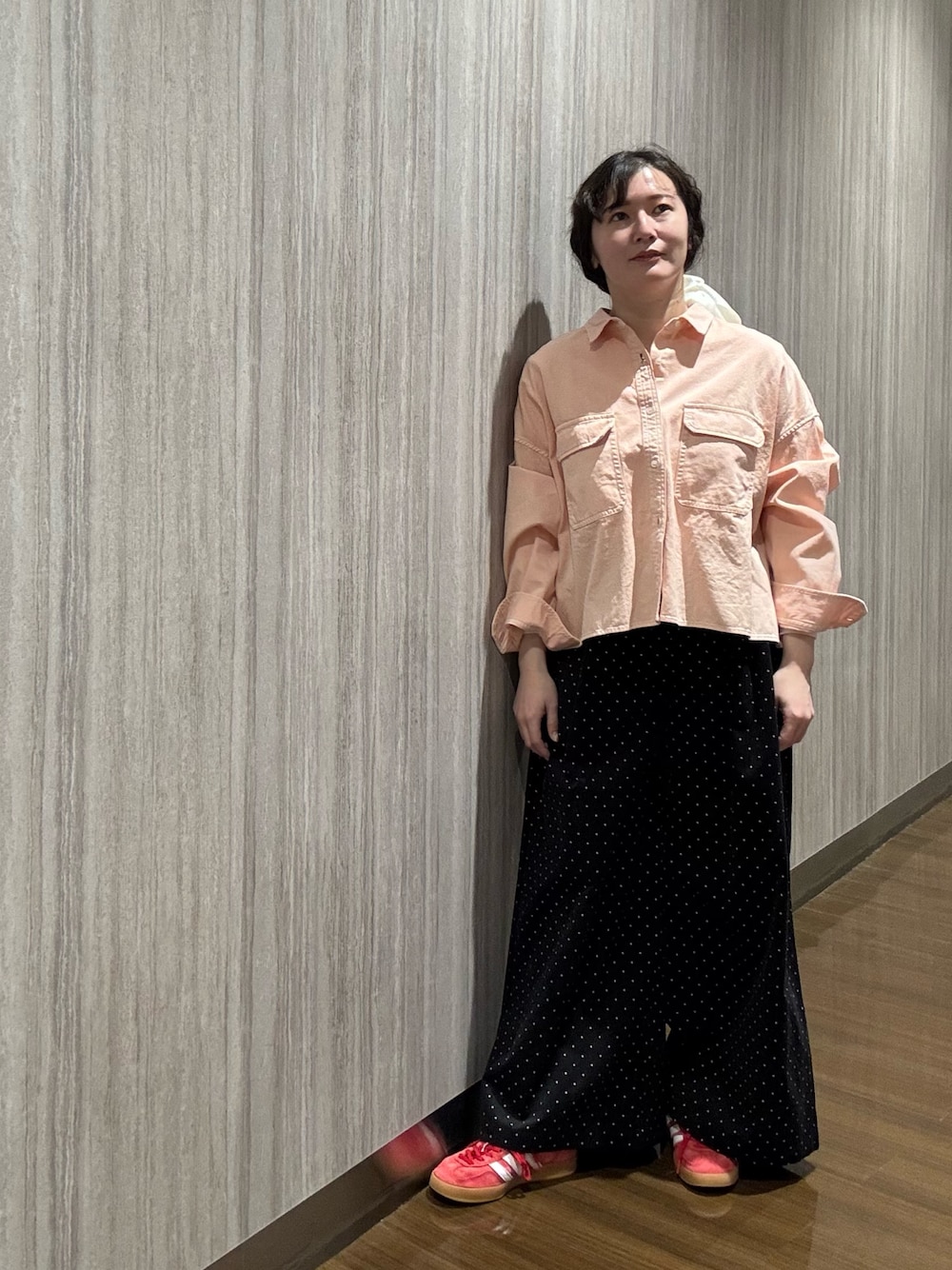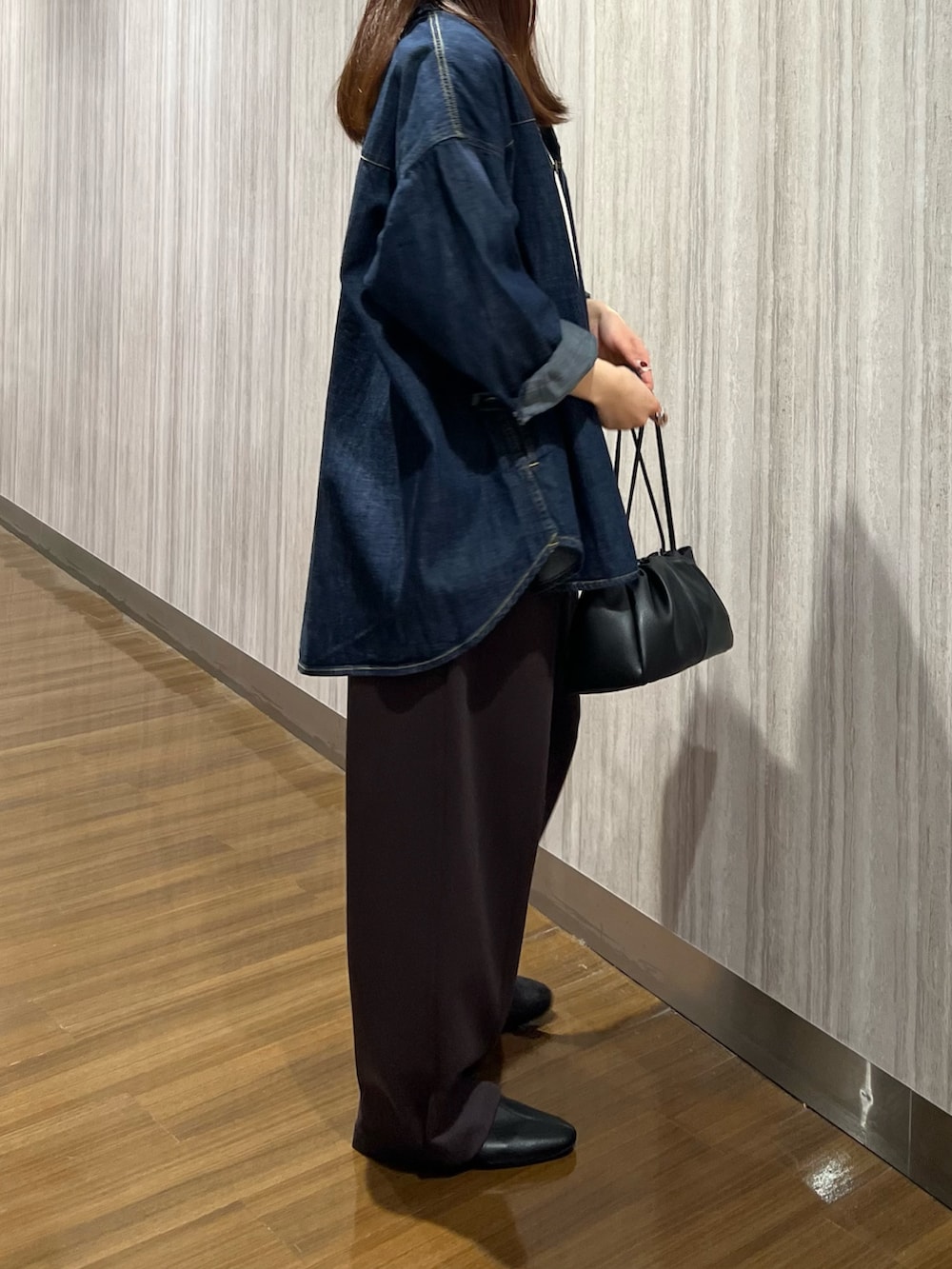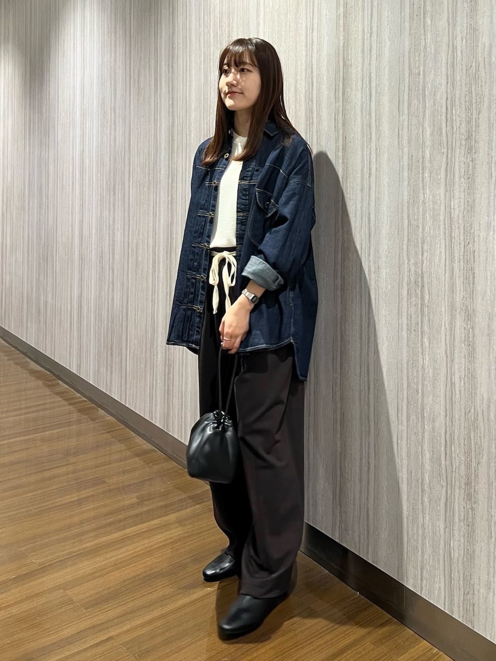 ゆるっとビッグシルエットなので、前はすっきり見えるように、ウエストマークになるリボンパンツと合わせました🎀🤎