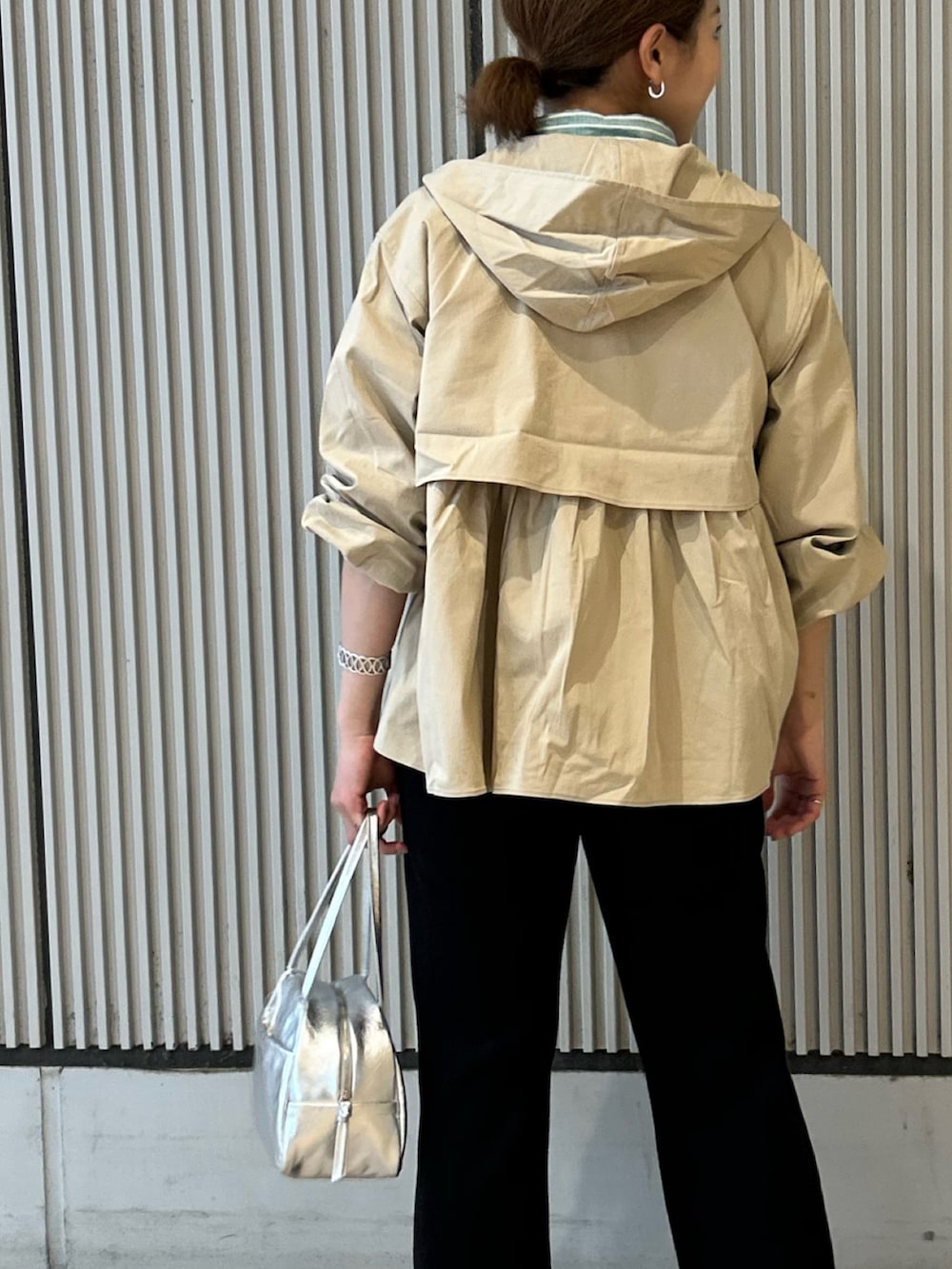 ジャケットも新作のアウターです!!後ろギャザーが女性らしい印象にまとめてくれるのでこちらも是非一度お試しください😌
