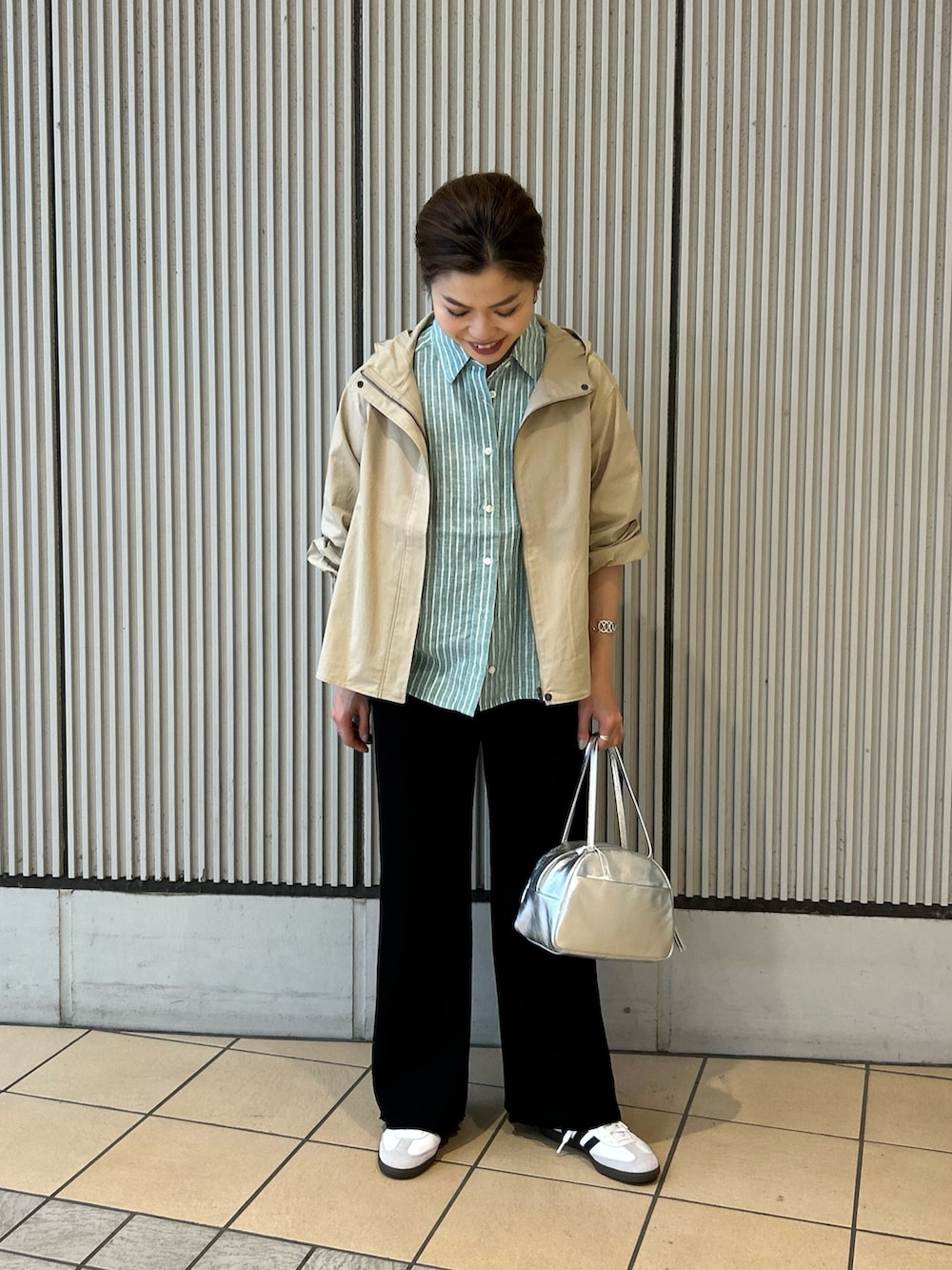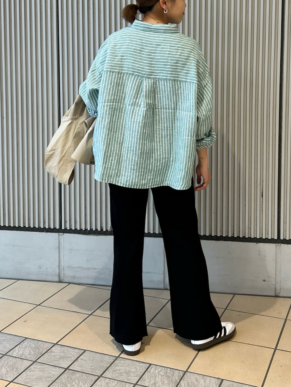 リラックス感だけでなく、短丈×フレアパンツのシルエットはスタイルアップを叶えてくれて写真映えもしますよ📸