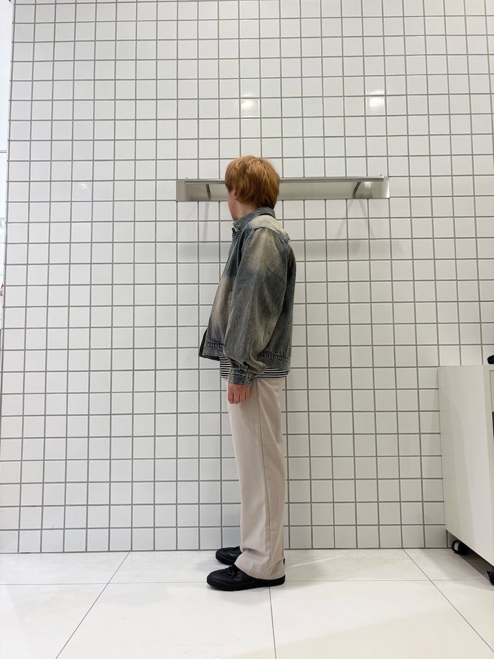 カジュアルになりがちなデニムブルゾンに×スラックスできれいめカジュアルな春コーデに仕上げました!