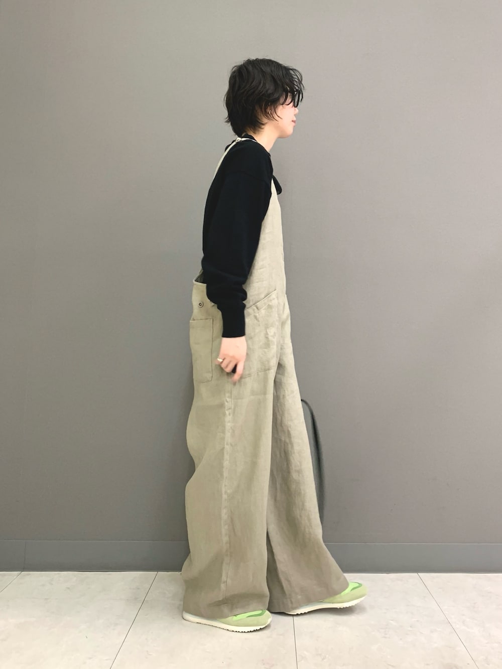 私も購入したお気に入りです。定番のバッグクロスサロペットのリネンバージョンで、コットンよりも軽量で柔らかい着心地です。春から夏まで使える生地感になっています。