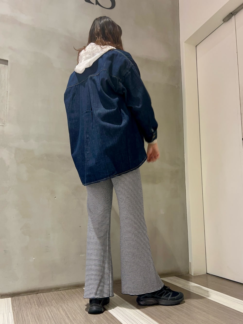 ステッチが本当に可愛いです!すごく薄手なデニムシャツなので着心地も抜群✨お尻が隠れるのが嬉しい!170cmでこの着丈で着用できます♡