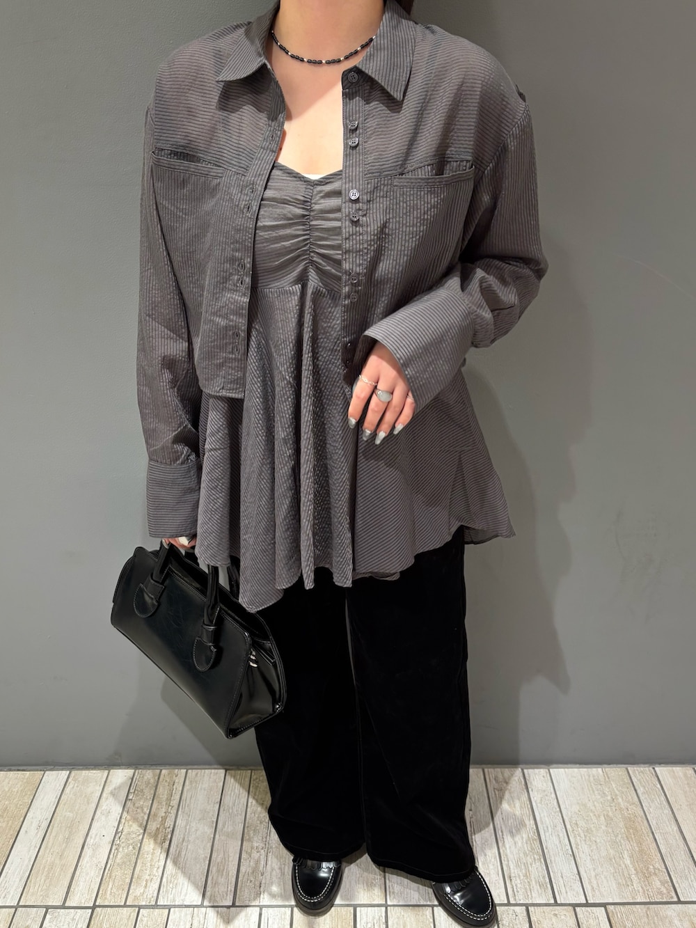 ・甘さのあるビスチェを下にしてセットのシャツを上から羽織ることで甘さ控えめにしてみました.ᐟ.ᐟ.ᐟ