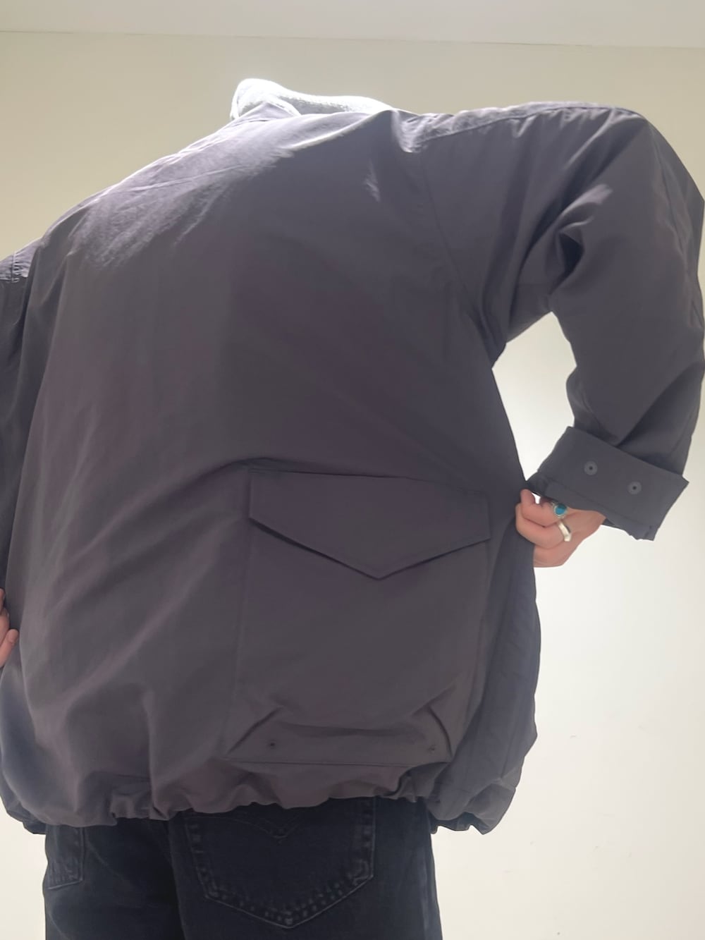 大きめなサイズ感なので、春のまだ少し寒さ残る時期には中に着込んで、ついでにレイヤードしちゃいましょう。