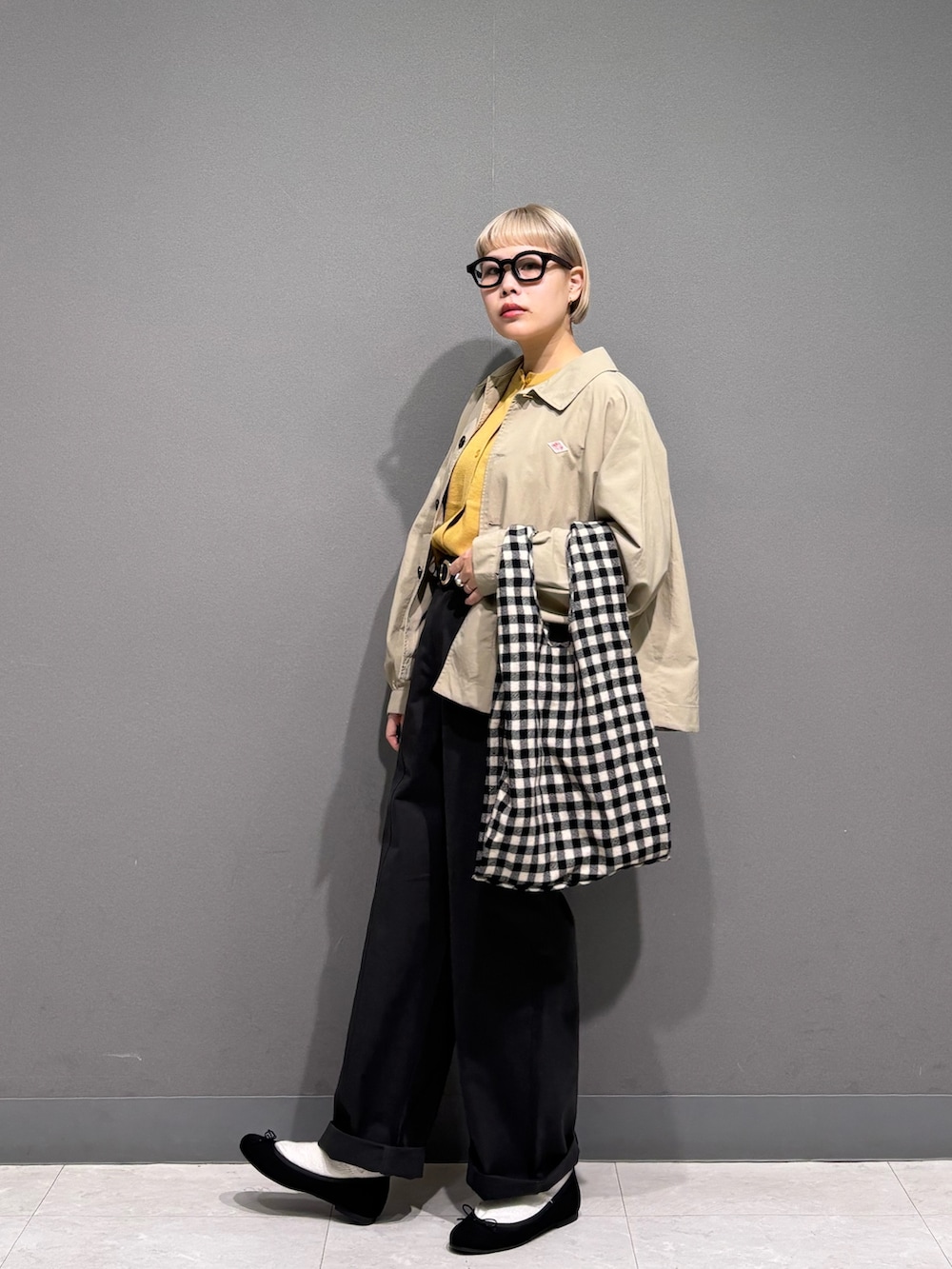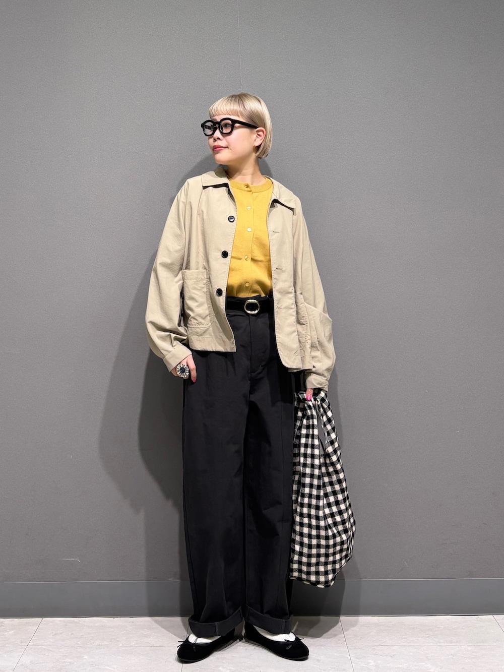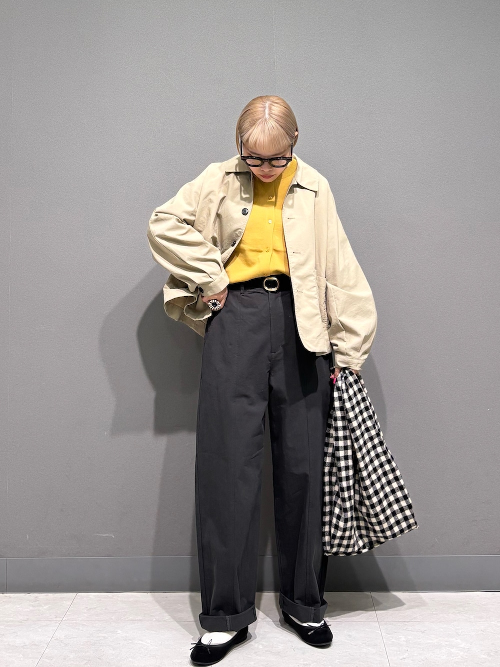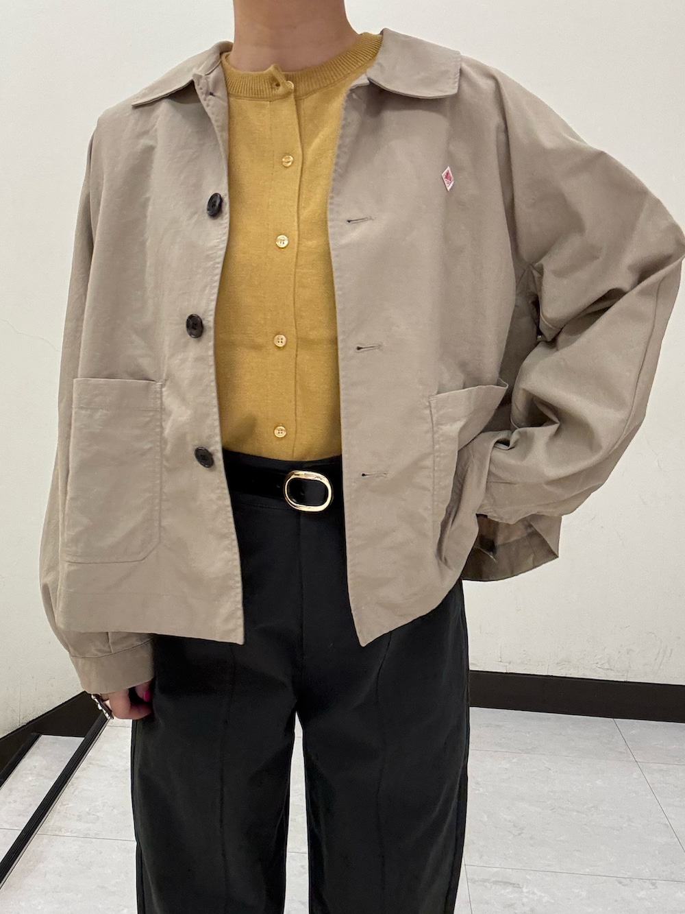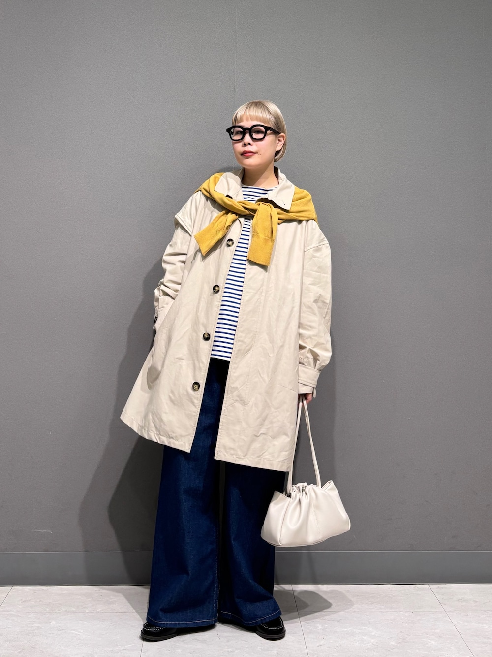 イエローのカーディガンが主役にした