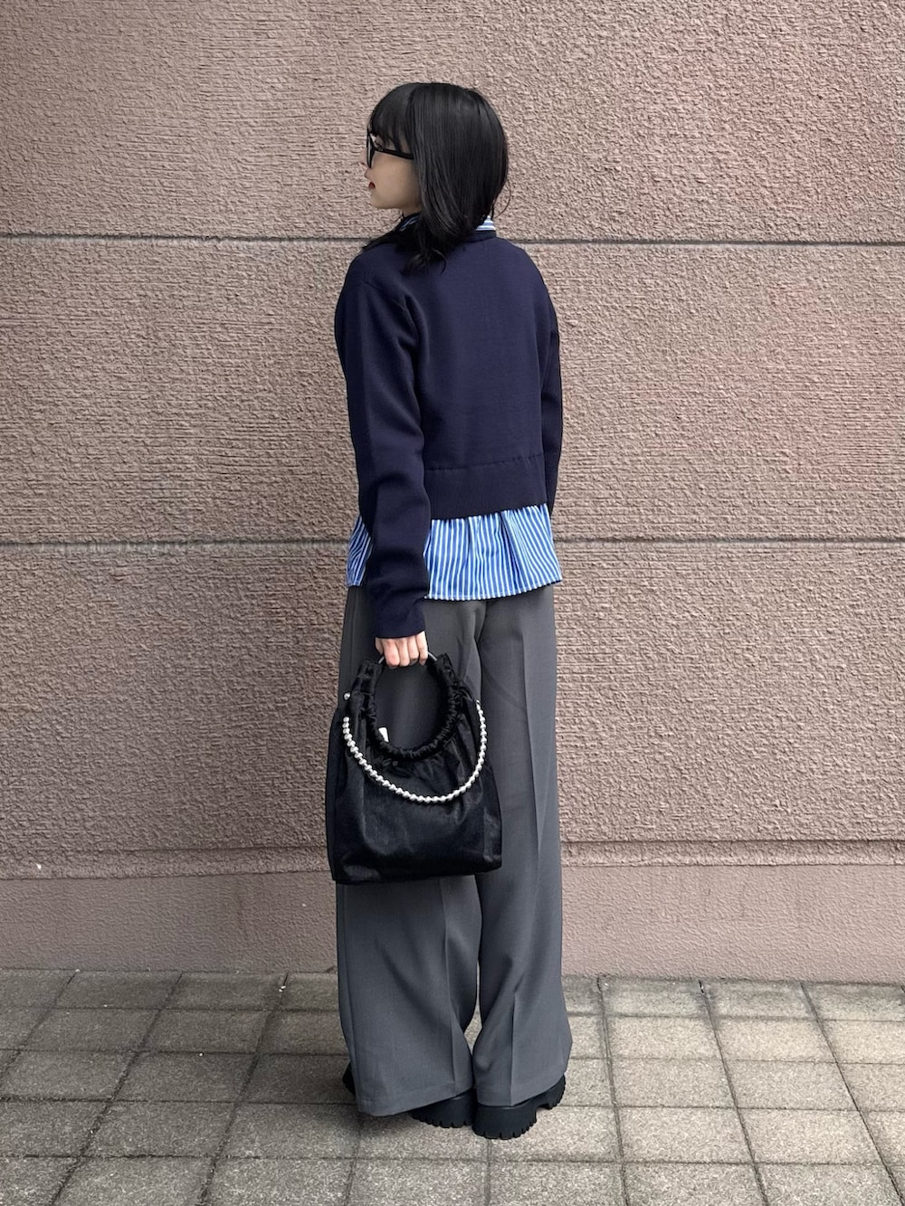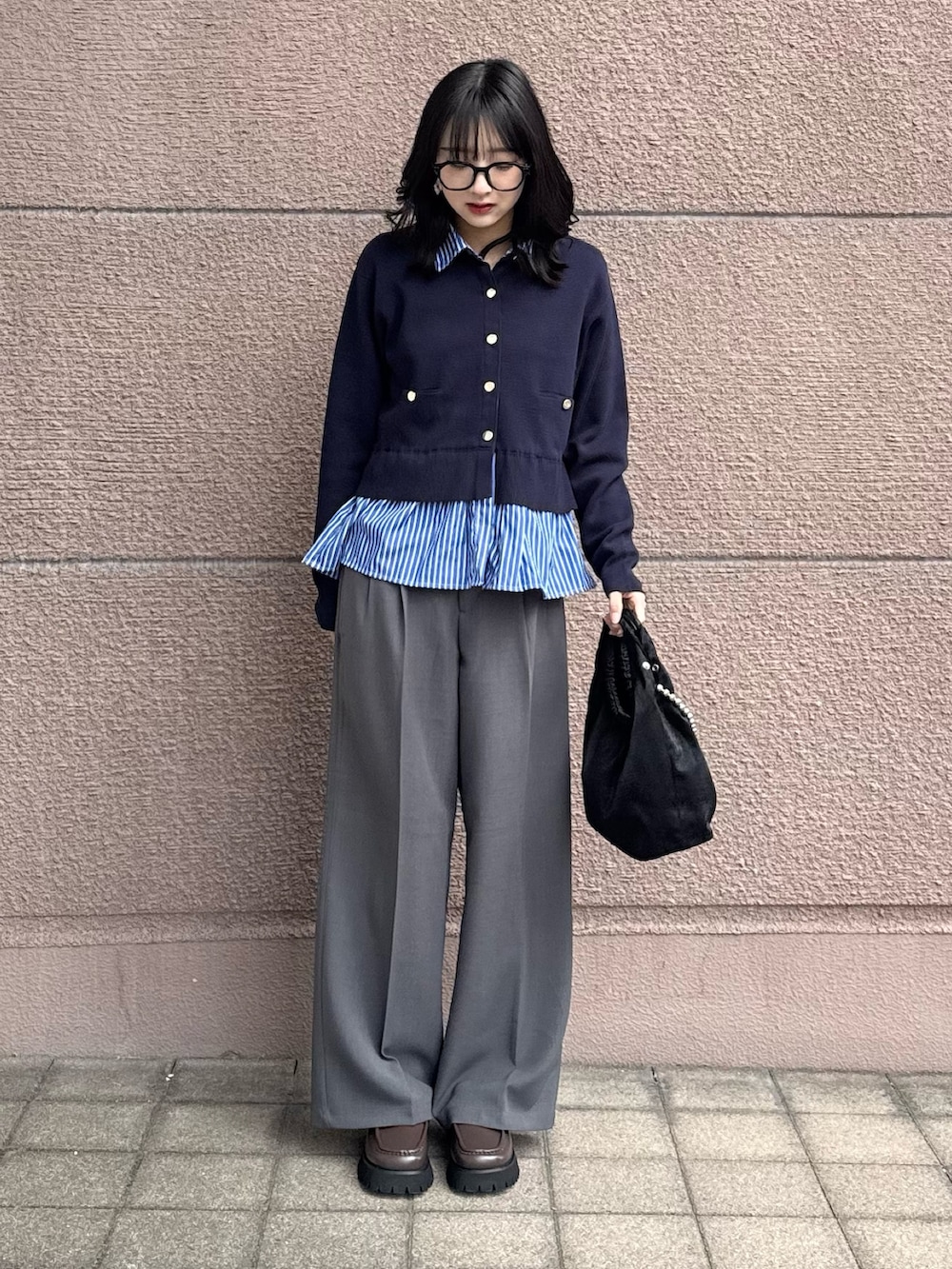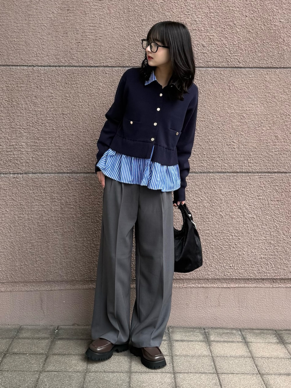 トップスはシャツレイヤーニットでデザインと色味が可愛いアイテムになっています!シャツとニットが一緒になっていて1枚で着れるでおすすめです!