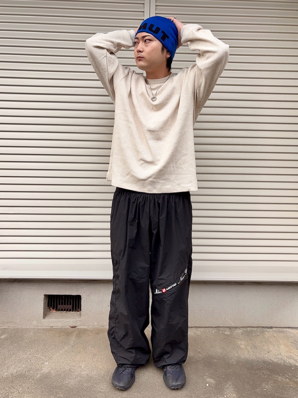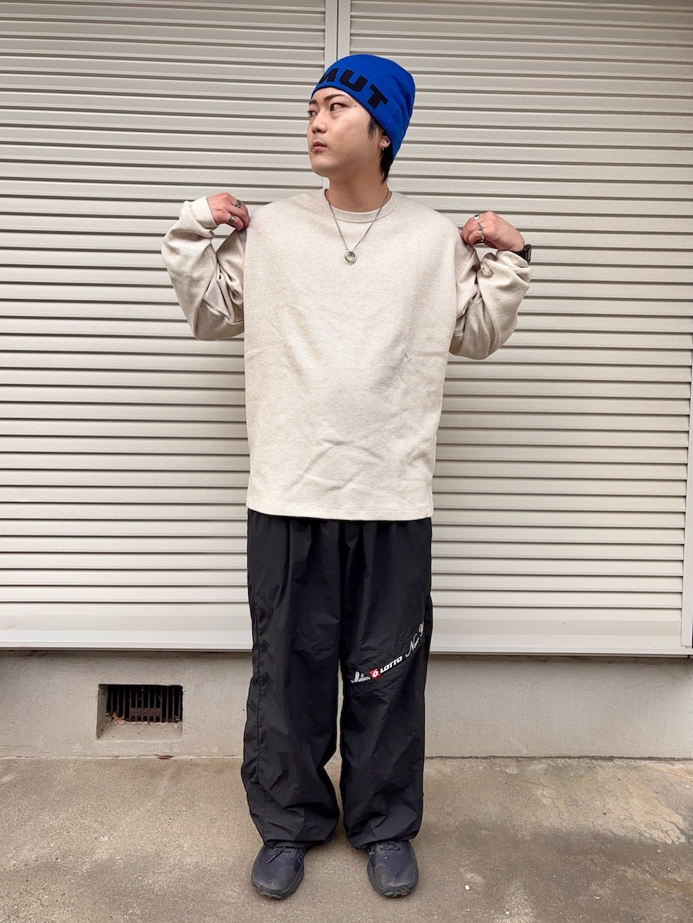 パンツはLOTTOのナイロンパンツです。