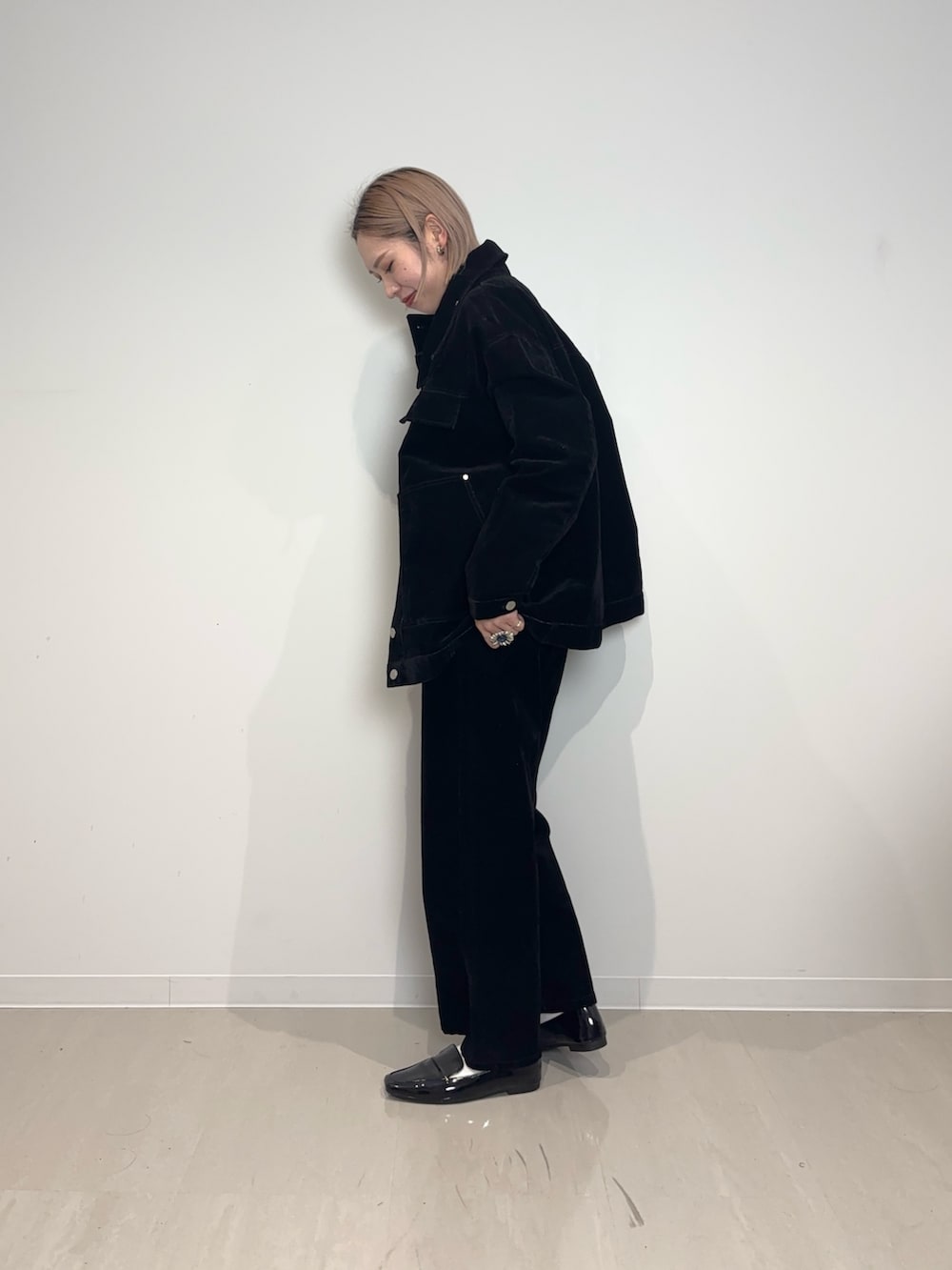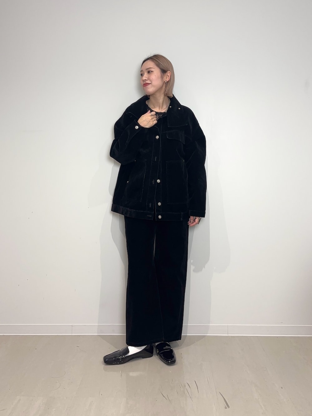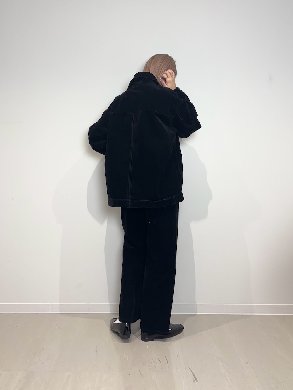 デニムコレクションの人気のデニムブルゾン。ブラックはデニム地にフロッキー加工がされていてカジュアルすぎない雰囲気が好きです!