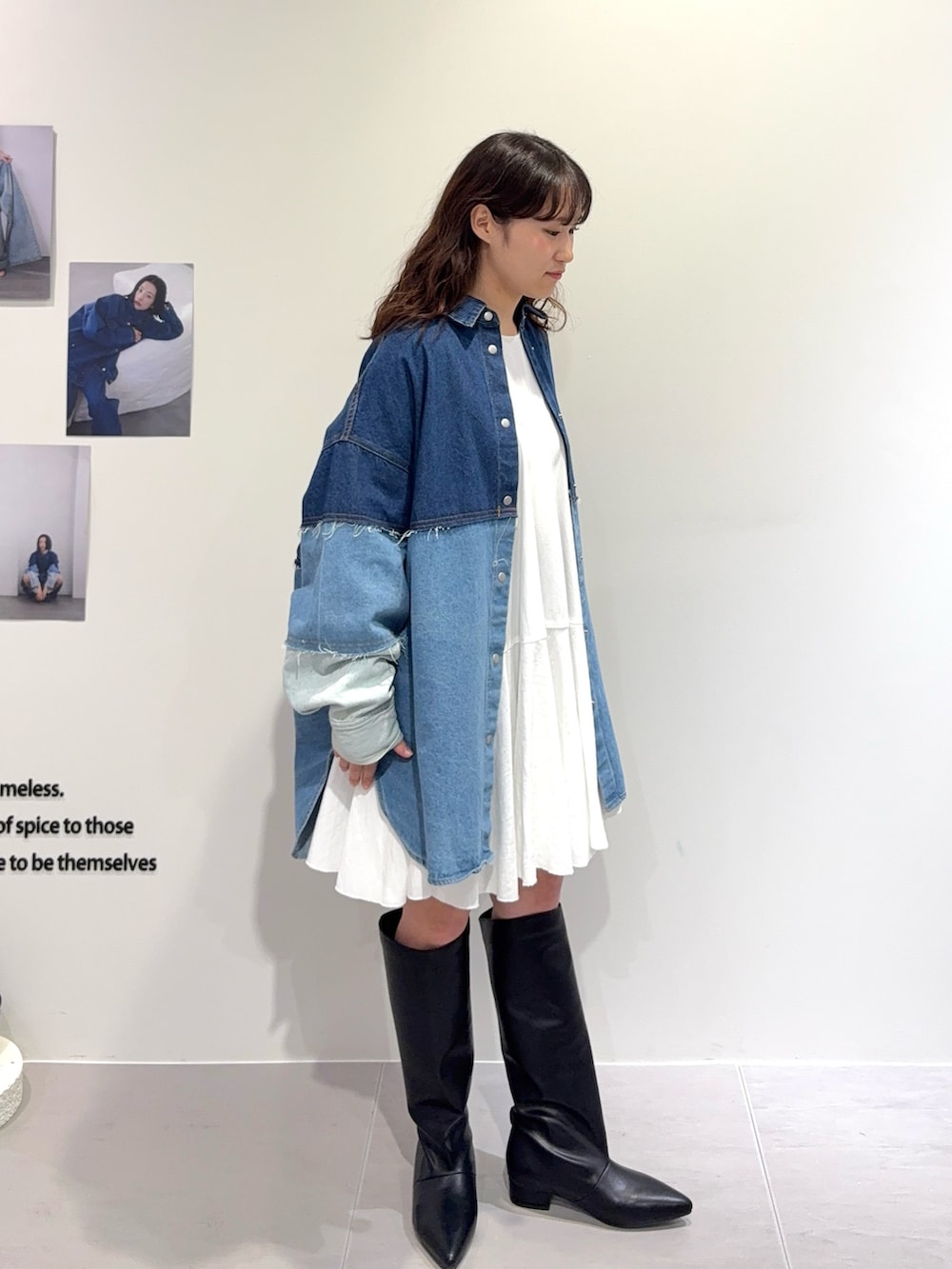 色の違うデニム地を組み合わせた配色が可愛い!ゆるっとしたシルエットも可愛い!