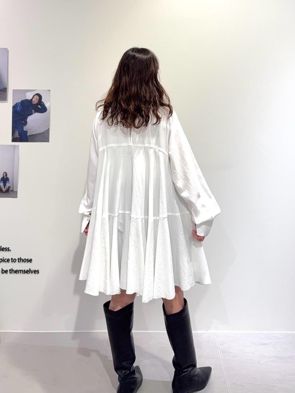 写真のワンピースと合わせても、横にスリットが入っているので、ワンピースのプリーツが揺れる感じを活かして着ることができます!