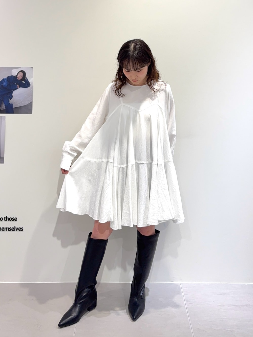 小柄さんはロングブーツかスッキリしたシルエットのパンツ合わせがおすすめです!152cmで膝少し上くらいの丈感でした。