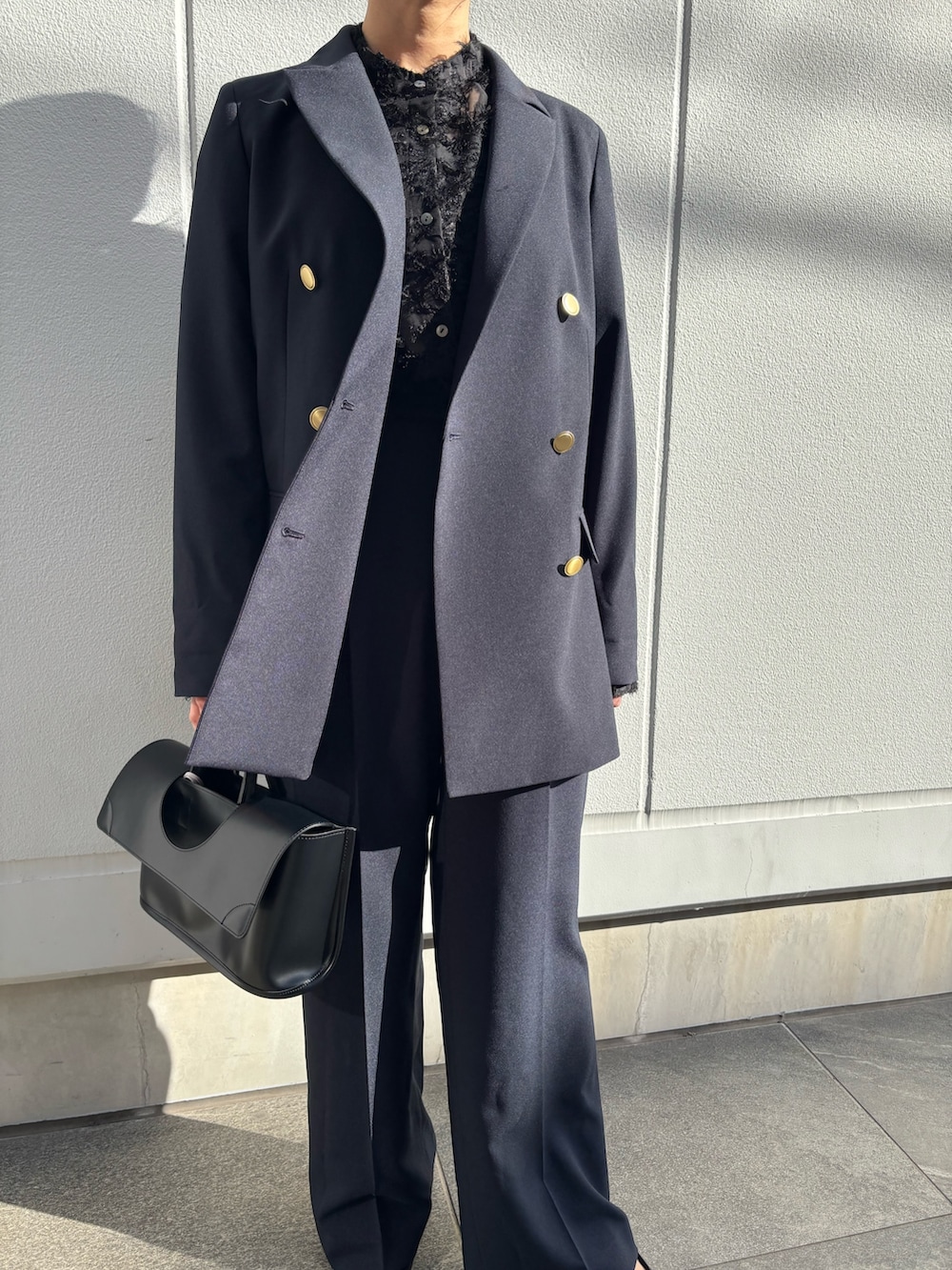 ジャケットはすっきりとしたシルエットでお尻まで隠れるデザインで安心感がありますよ!