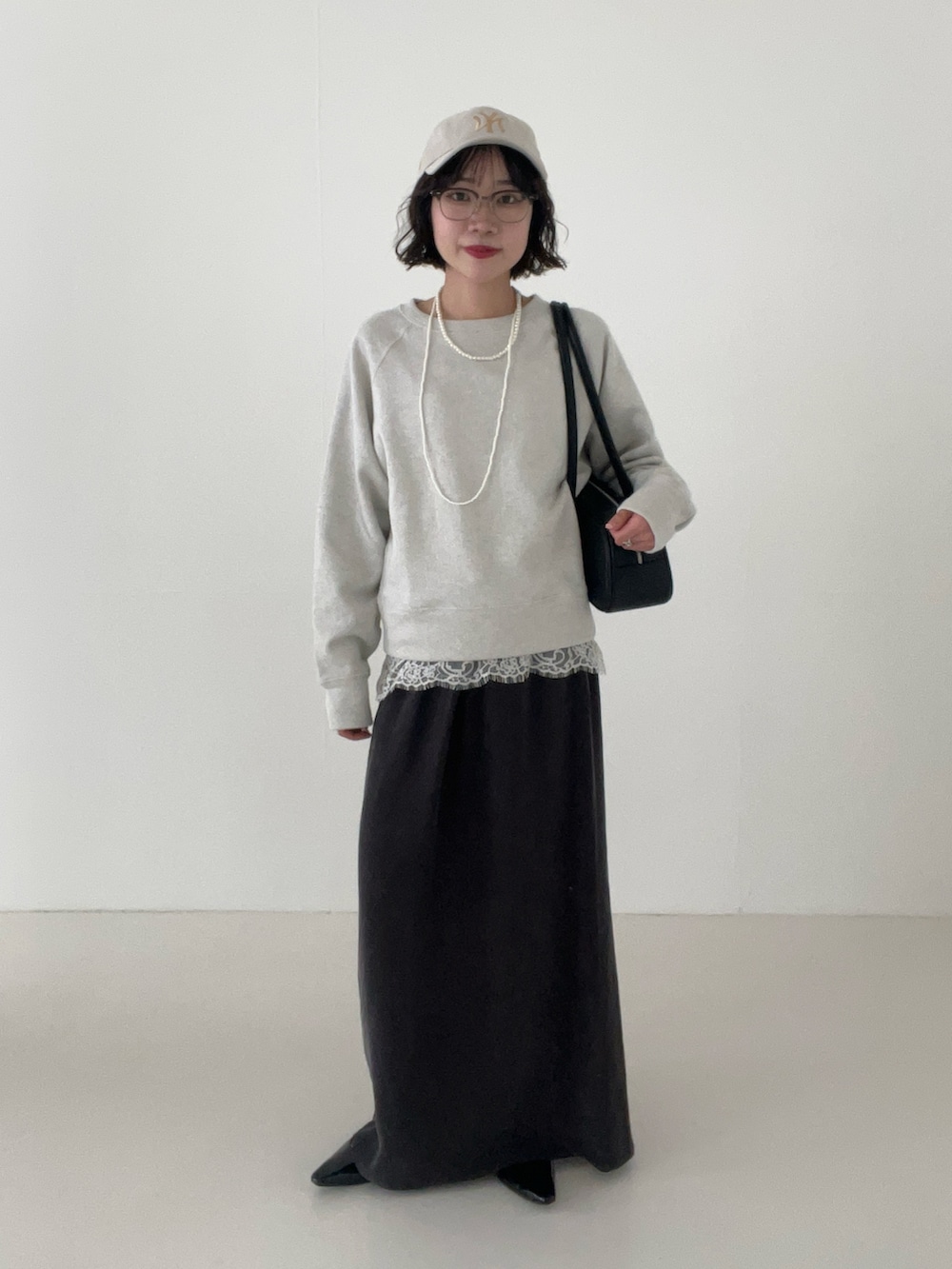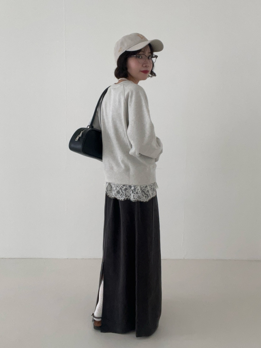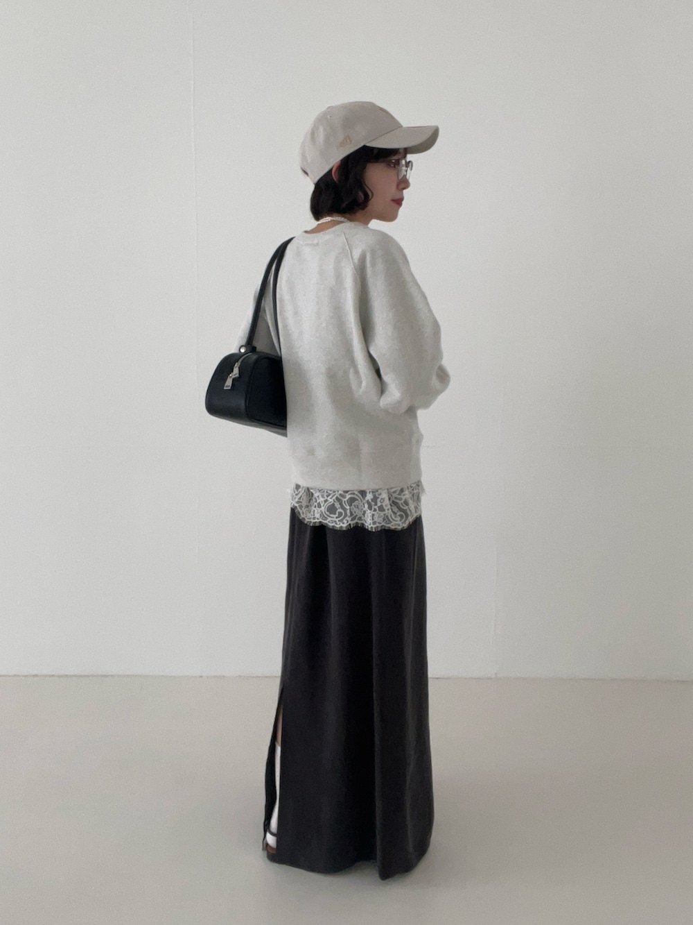 キュプラの落ち感が綺麗で、Iラインですがお尻周りはタイトすぎずゆったり履けるのが嬉しいポイント◎