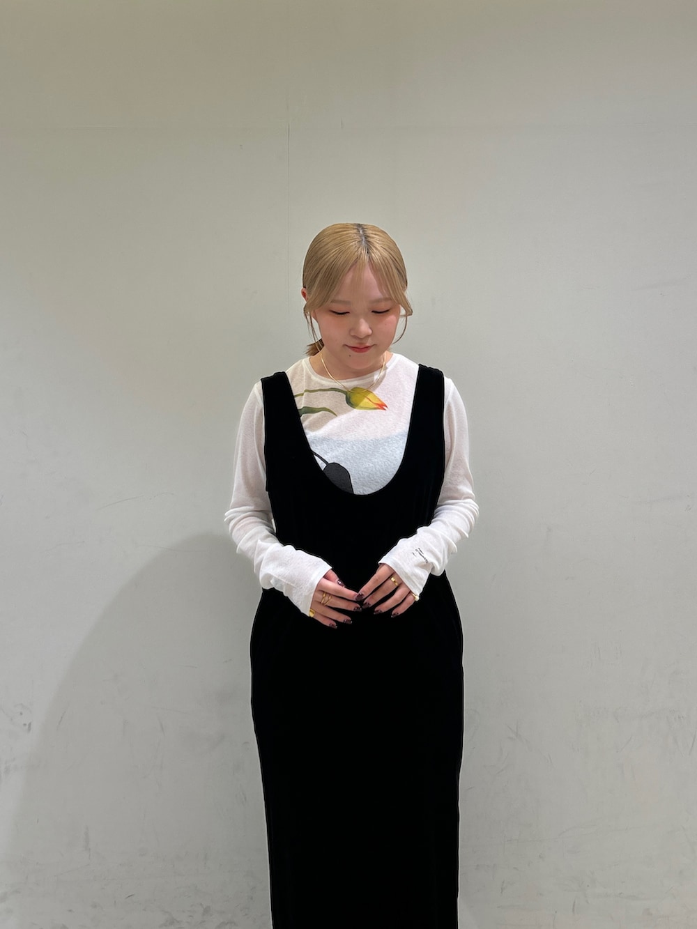 中はシアーのインナーで髪はまとめて大人っぽくしました!