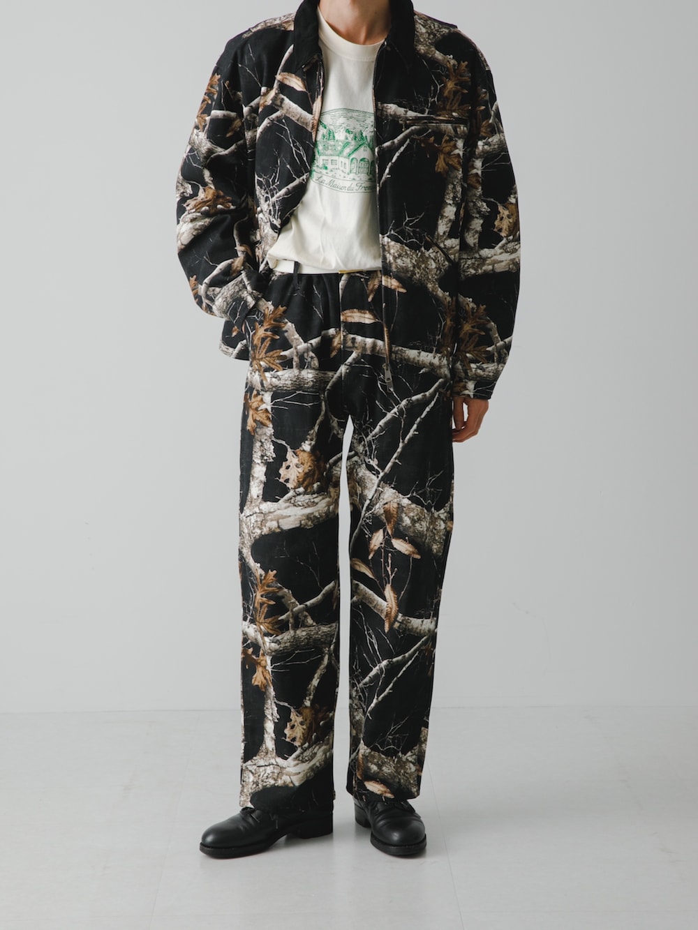 柄、カモ柄。詳細もカモフラージュされてしまっているけどよく見るとしっかりとワークディテール。