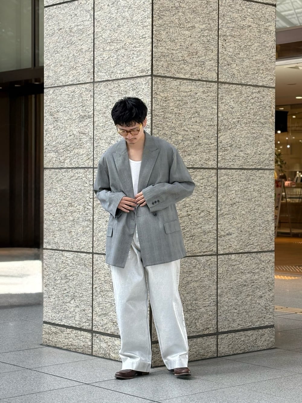 かなり大きめな作りなので、カチッとしすぎません。ジャケットというよりカーディガン感覚で。