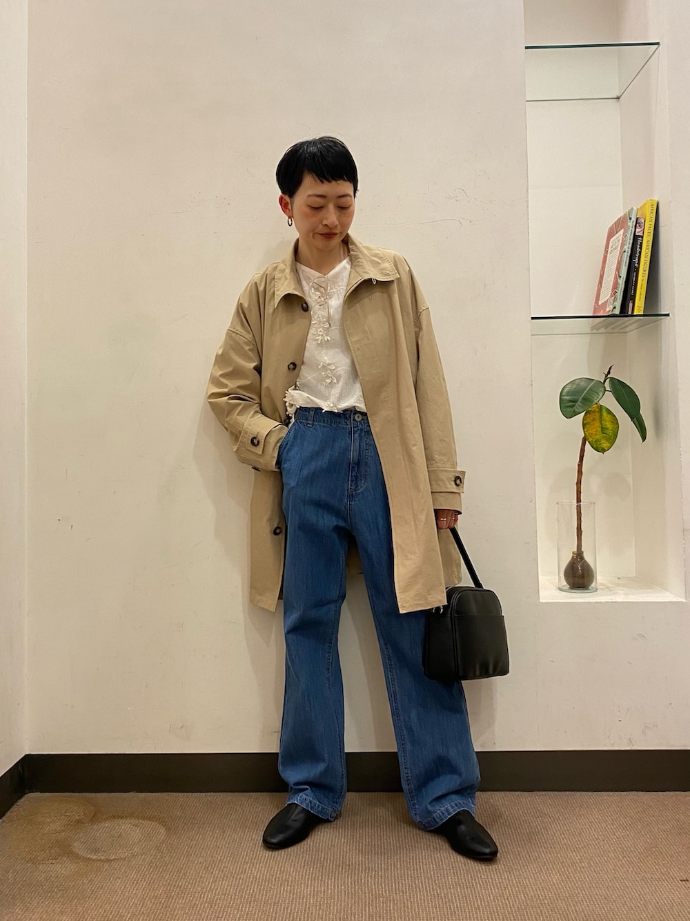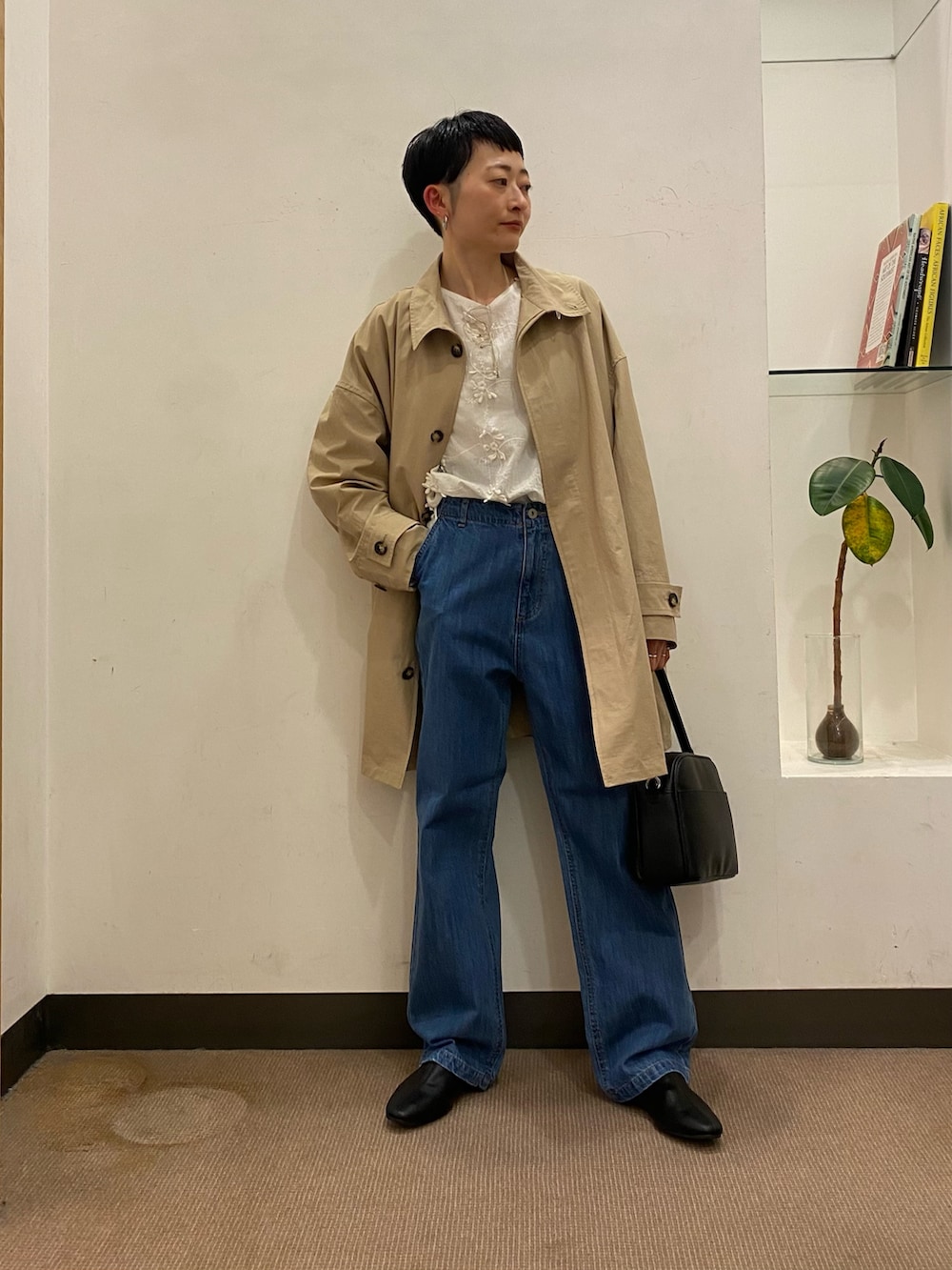 立体感のある花柄ブラウスはシンプルにデニムで合わせてみました。