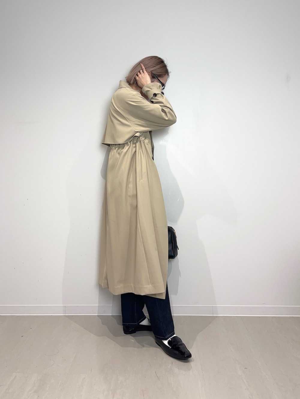 大人気のドロストトレンチコートです!本当に軽くてサラッと羽織って頂けます!個人的には外側にベルトがなく内側のドローコードで絞れる所や、落ち感のあるトロンとした素材が推しポイントです♡