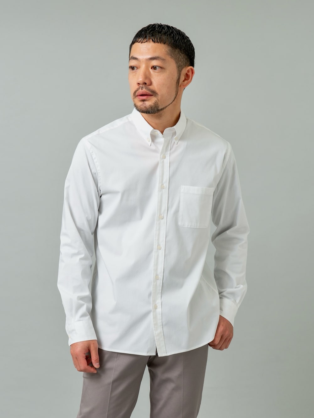イージーケアの快適素材にベーシックデザイン、あらゆる場面で使える汎用性抜群の1枚。