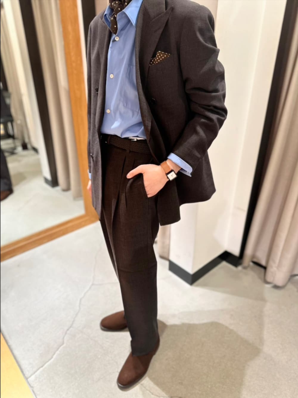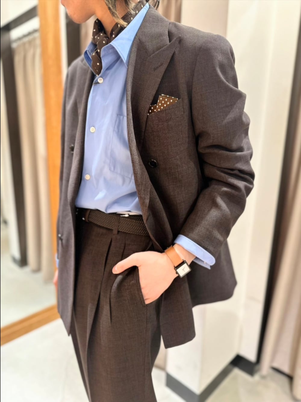 ブラウンのチェックのセットアップを使ったコーデです!