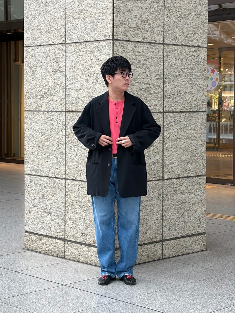 黒ジャケットなので他のアイテムはカジュアルめなもので合わせてみました。