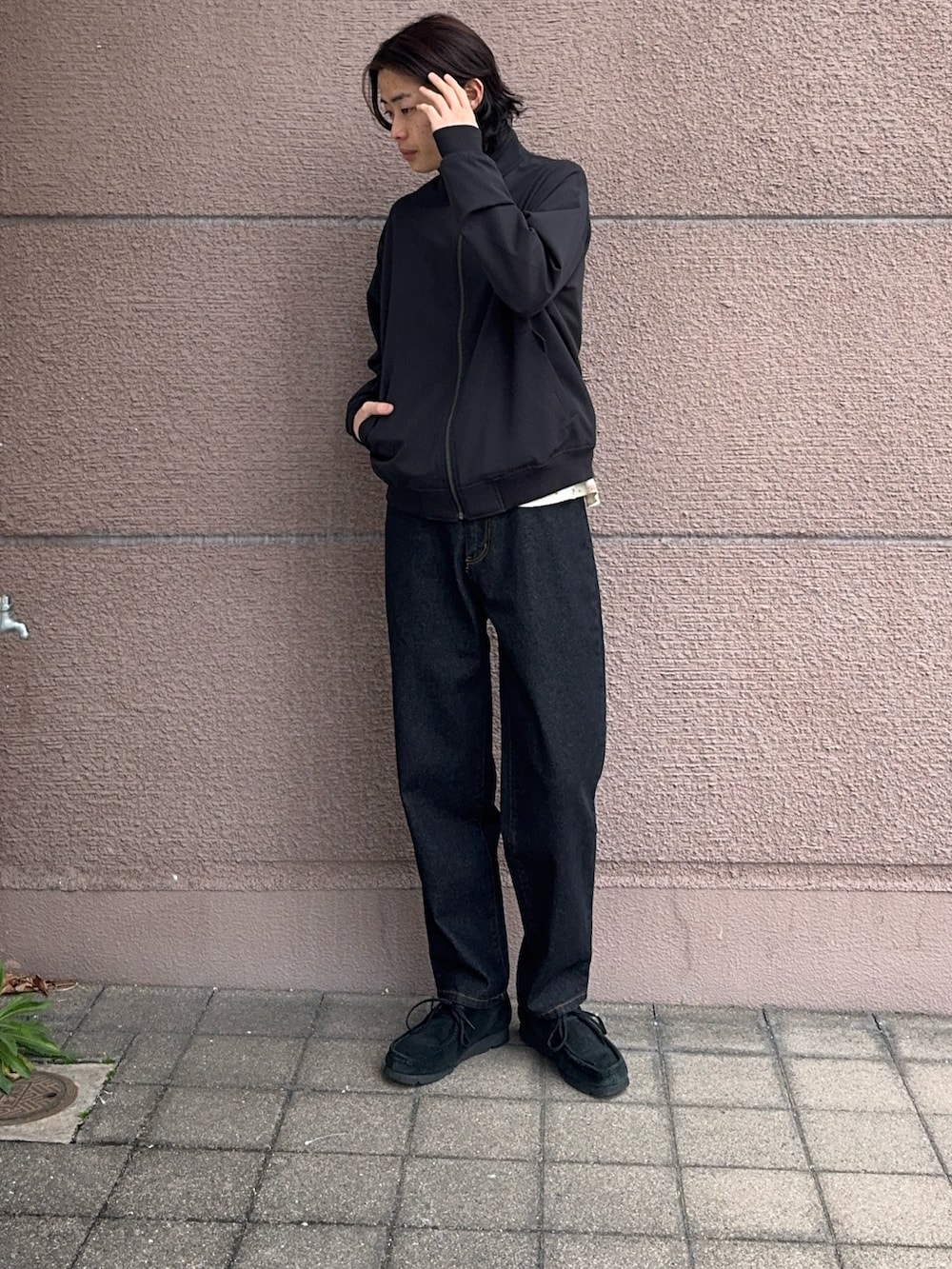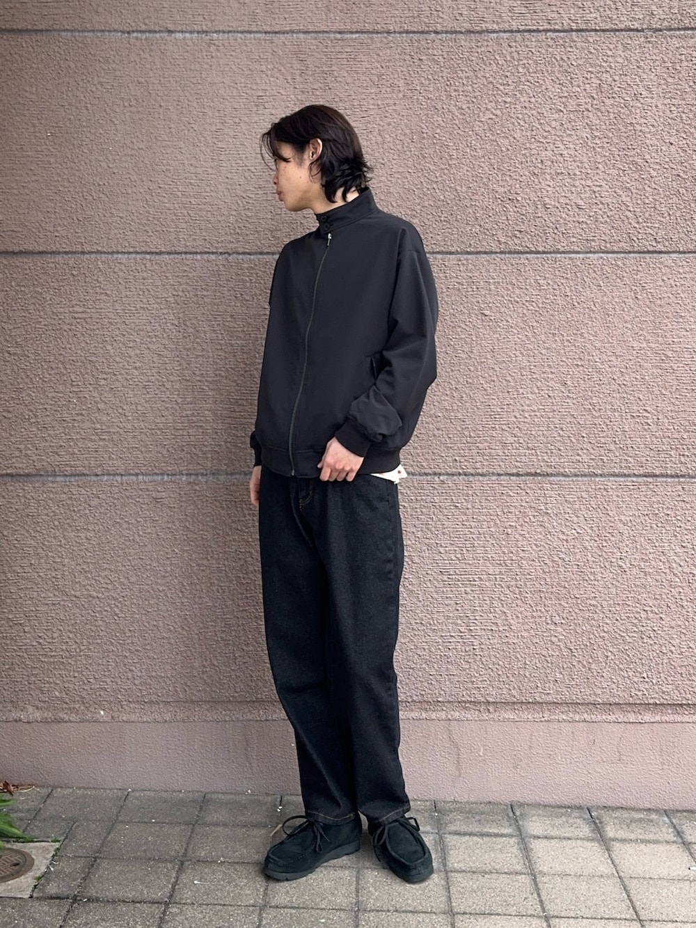 今回のコーディネートは黒のハリントンジャケットに黒のデニムパンツを合わせたコーデです!ジャケットはストレッチが効いてて楽にカッコよく着ていただけます!デザインもシンプルなので合わせやすく、たくさん着ていただけると思います!デニムパンツはシンプルなストレートのシルエットで合わせやすいデニムです!トップスは基本なんでも合わせていただけるデニムです!とてもおすすめです!