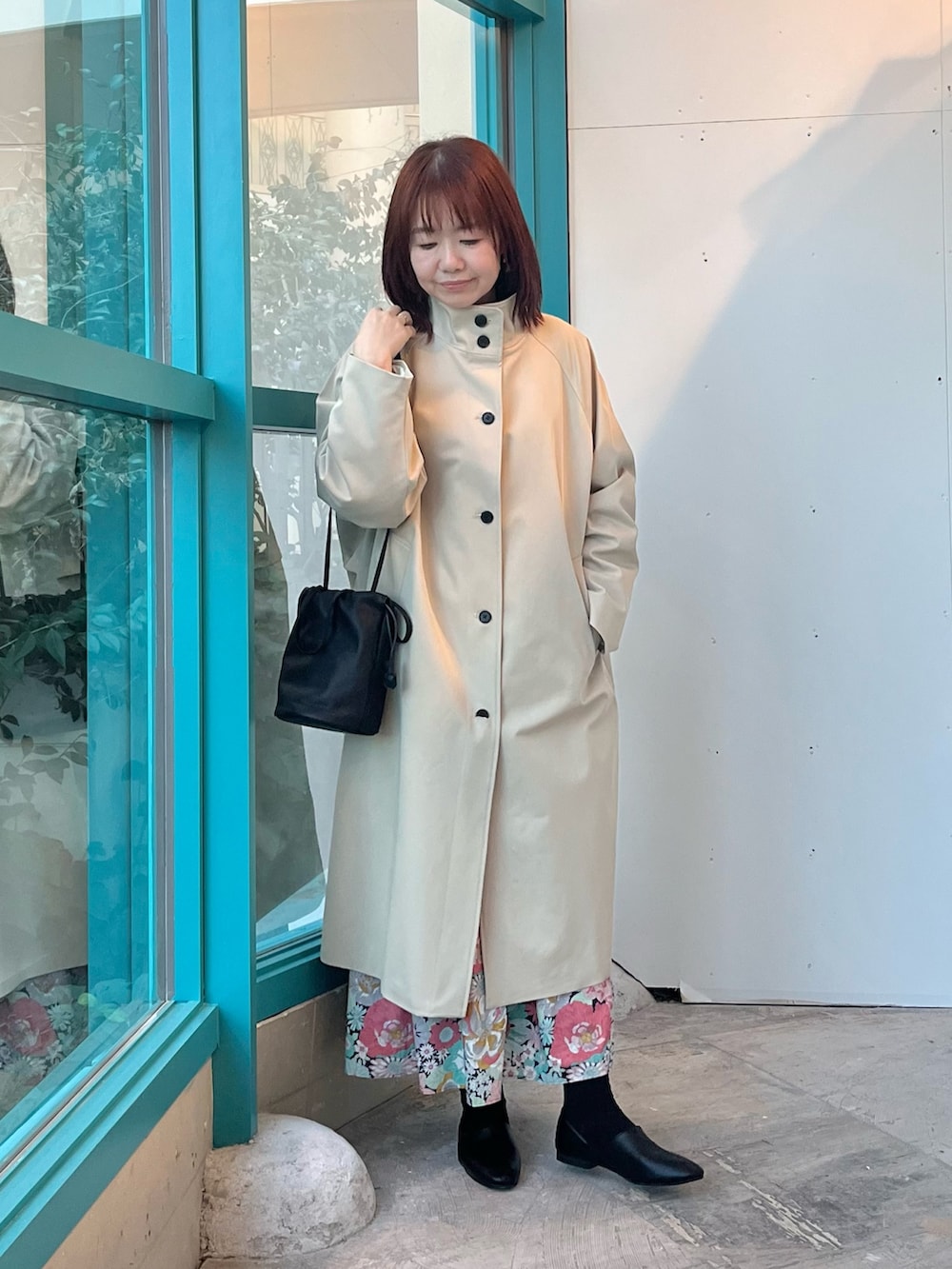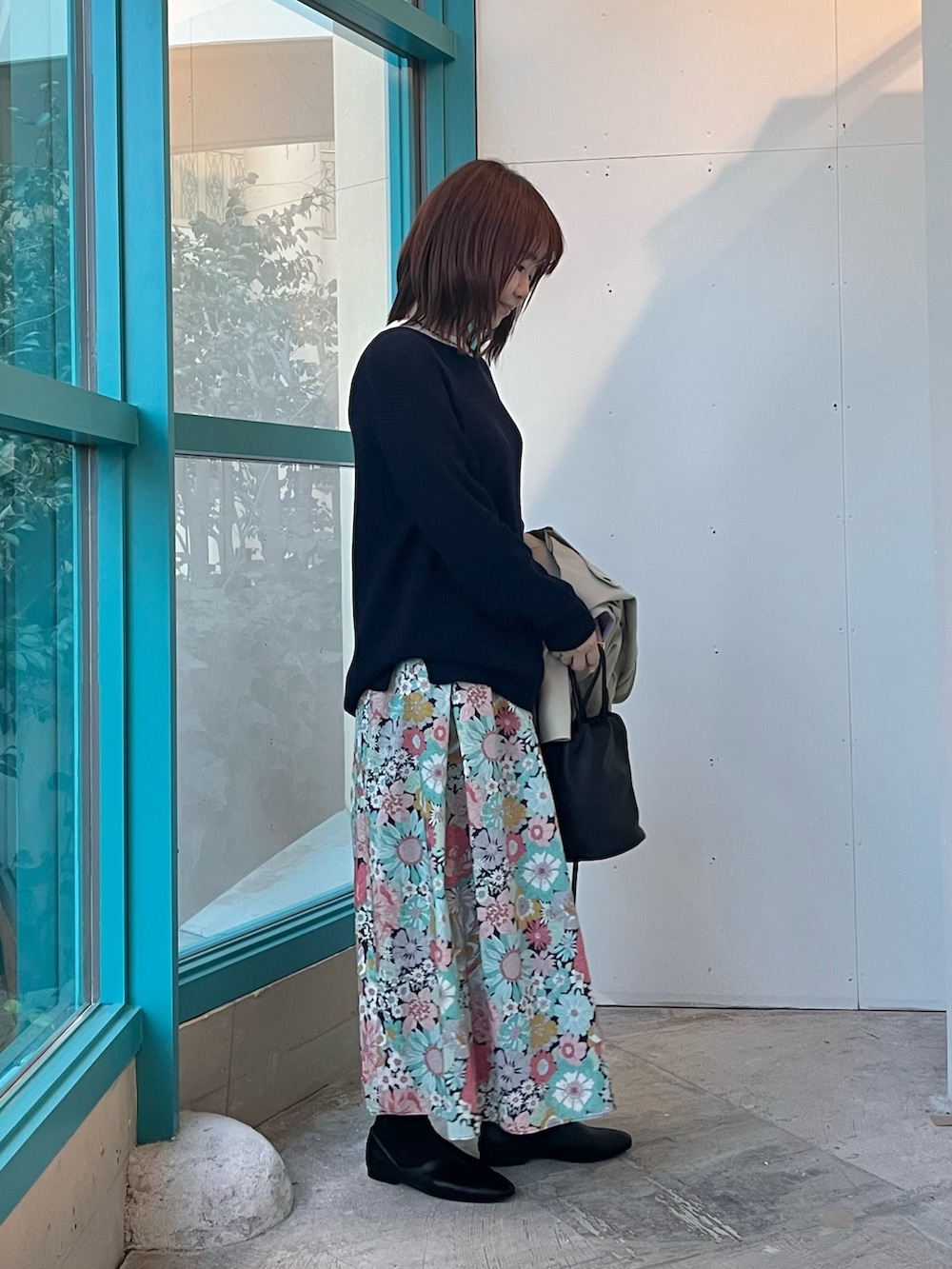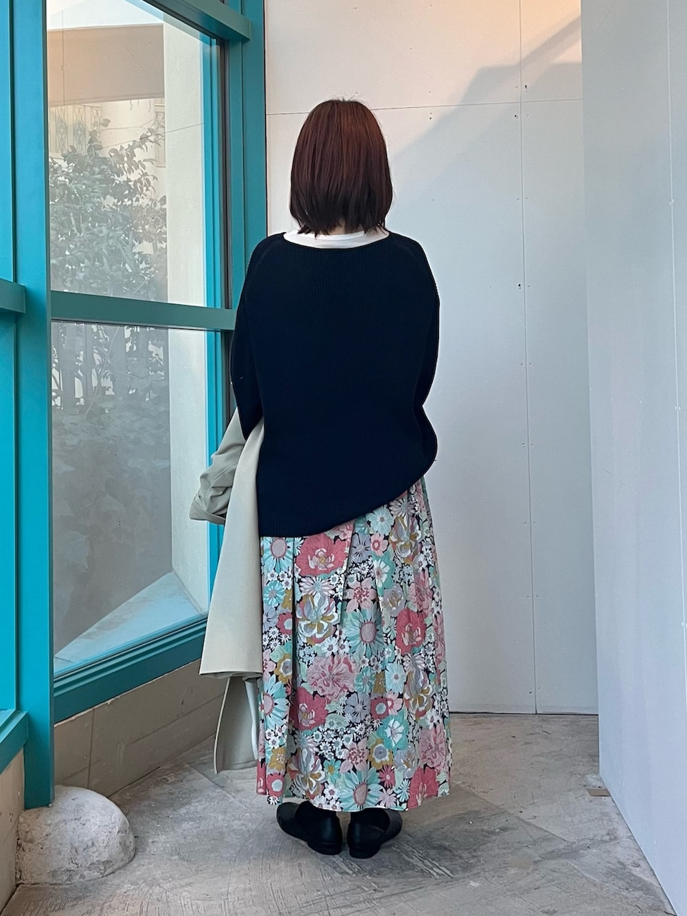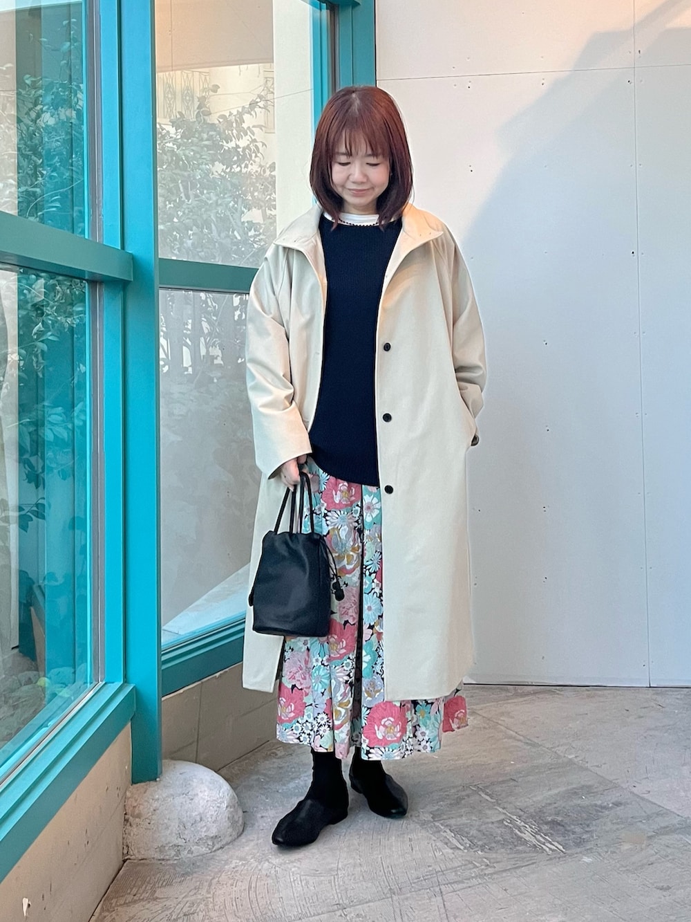 落ち着いたアウターだからこそ、柄スカートも大人っぽくまとまります✨