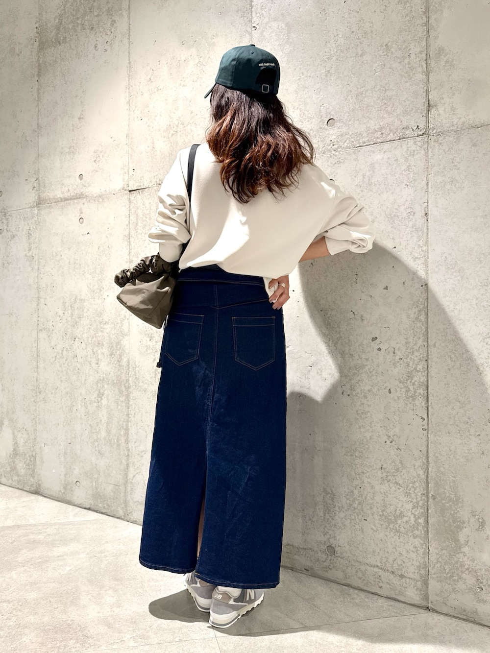 とろみ系カットソーと合わせて大人カジュアルな印象にしてみました。
