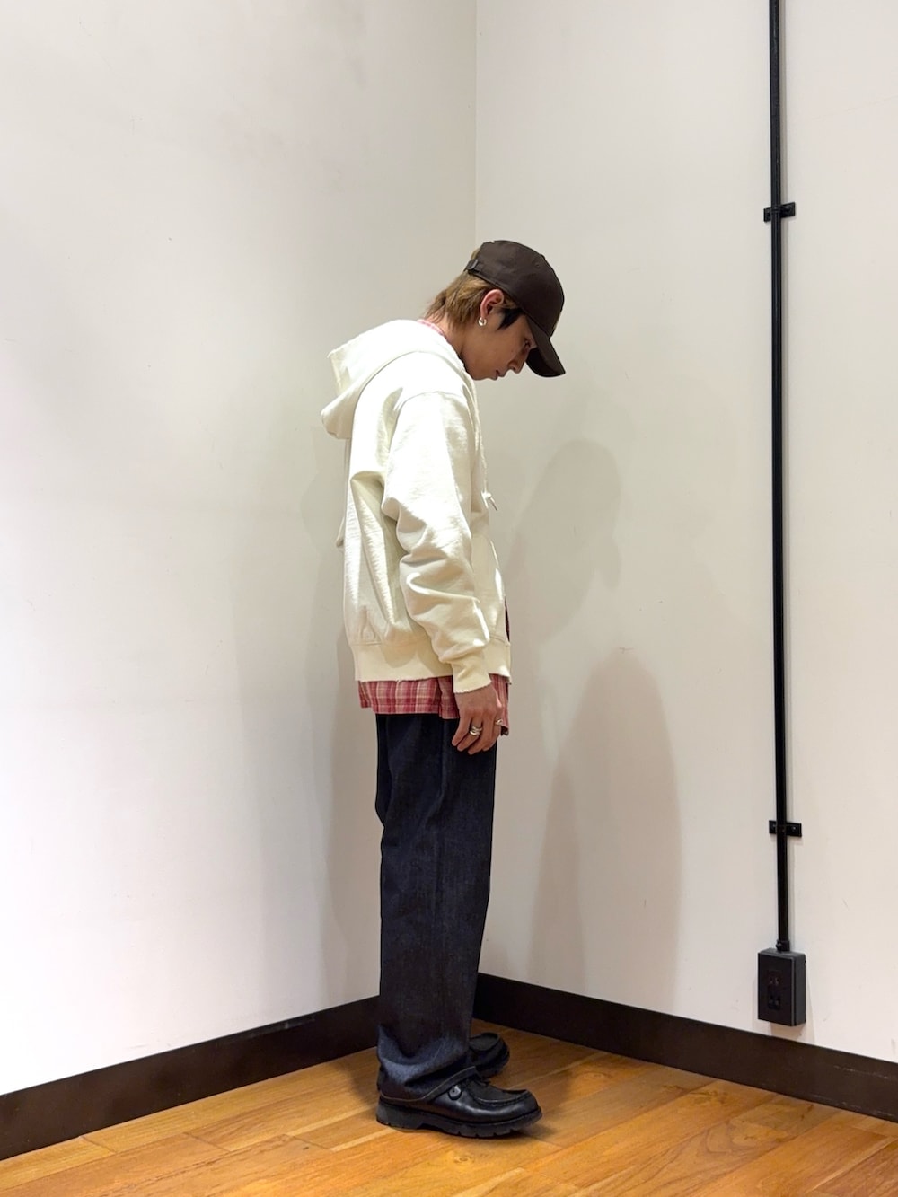 学生特有のカジュアルさとストリートさを全面に出しつつ、トラッドな雰囲気を革靴でちょい足しするコーディネートにしてみました。