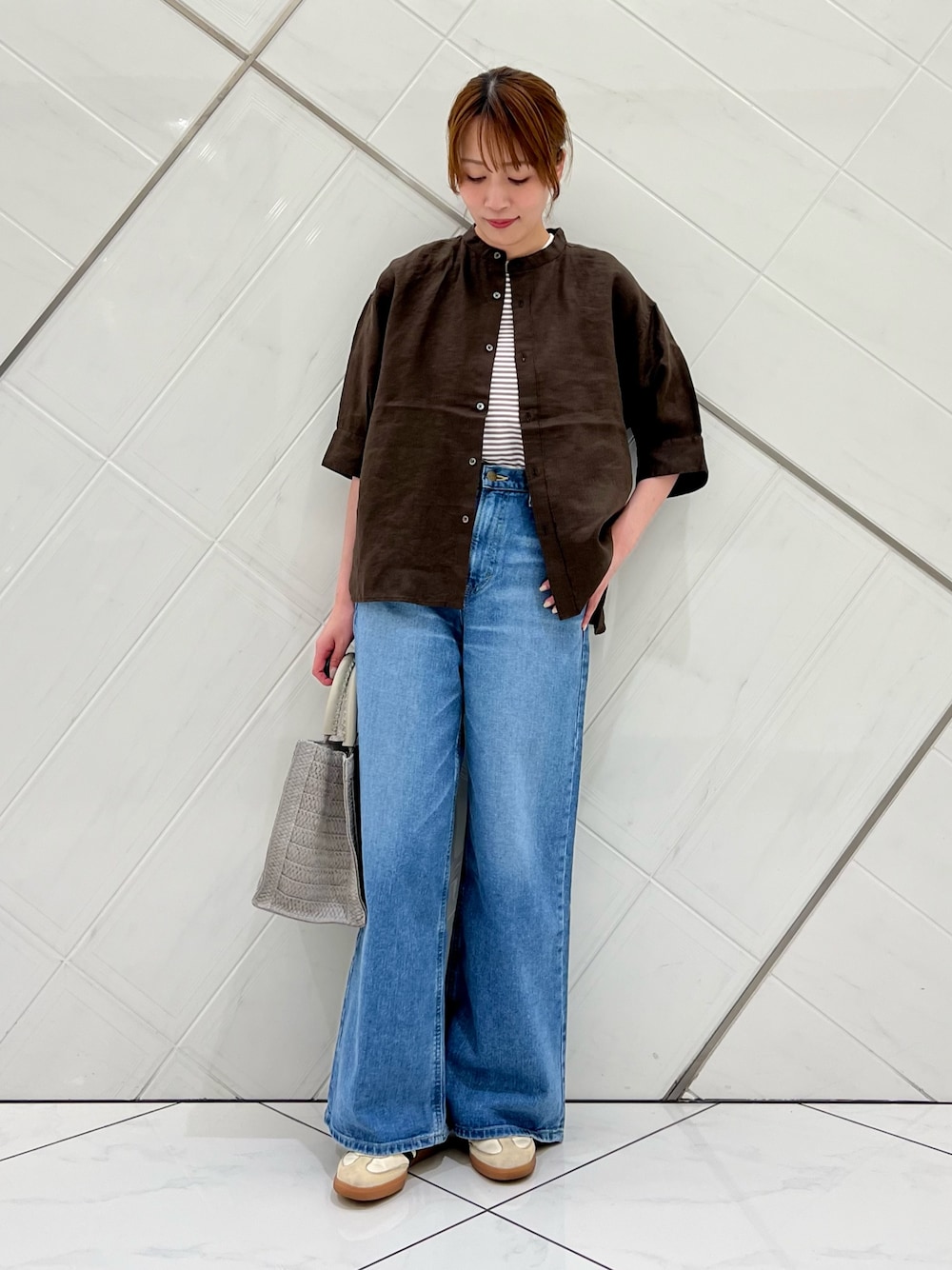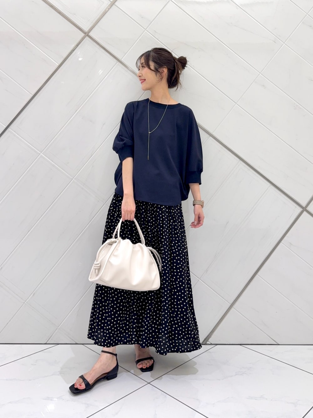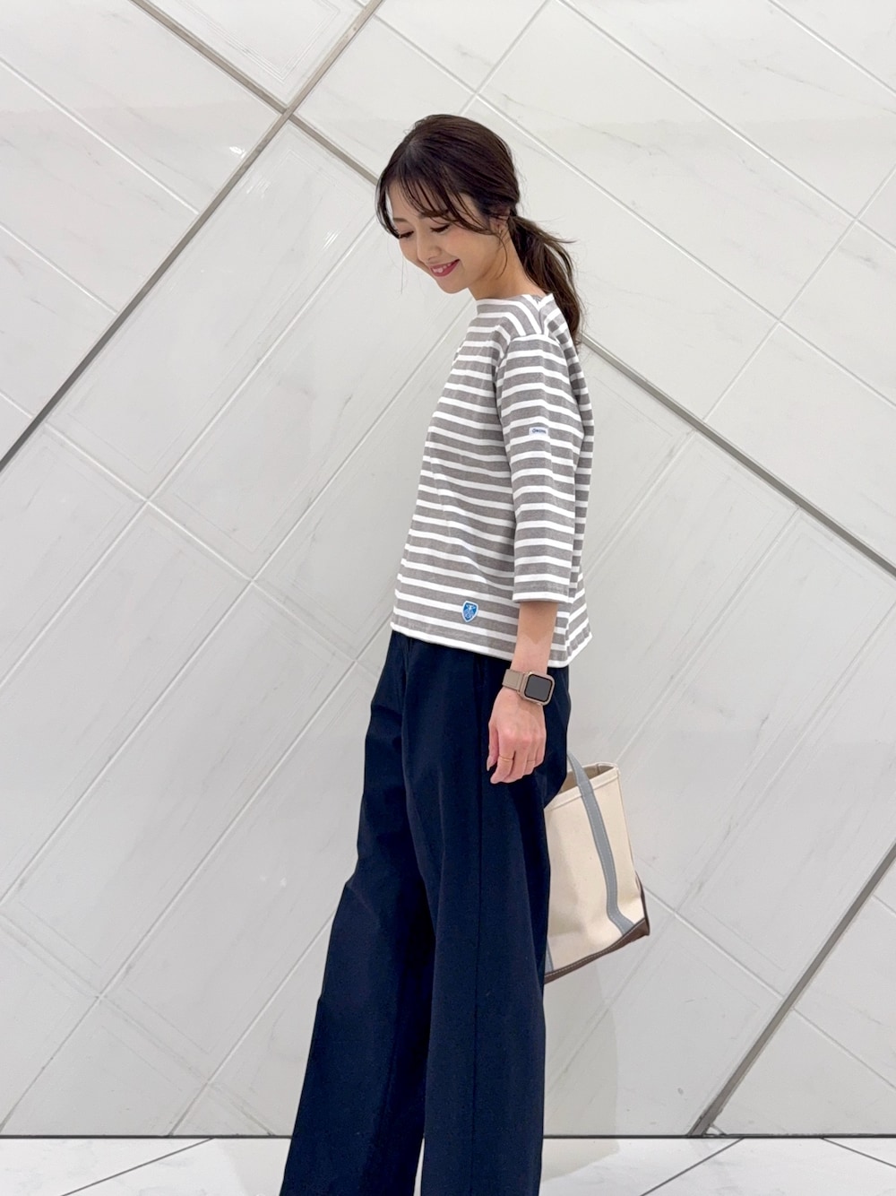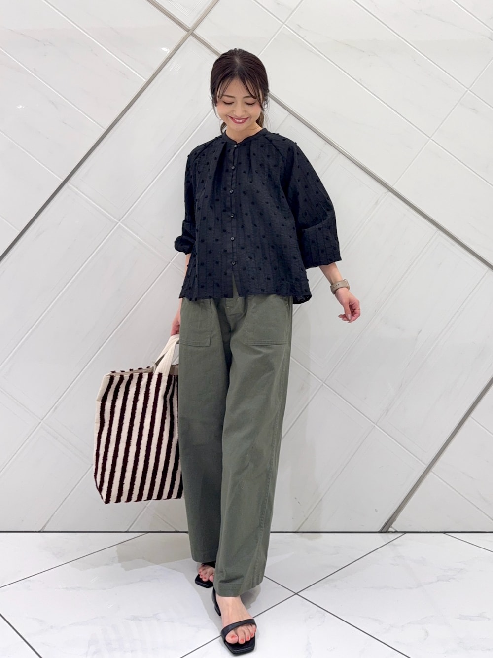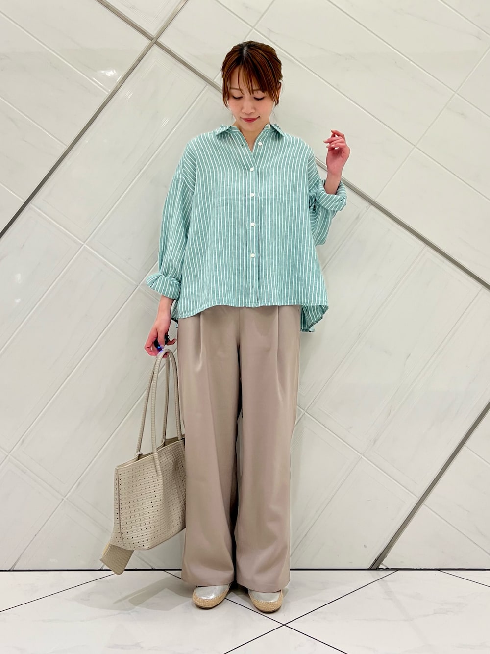 ボトムは薄手で落ち感のある生地でさらっとした軽い着心地です。