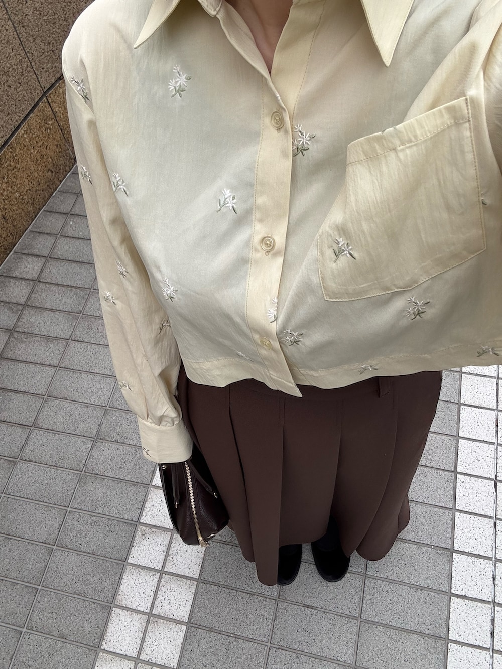 春らしい小花の刺繍シャツを使ったコーデです🌼🌷