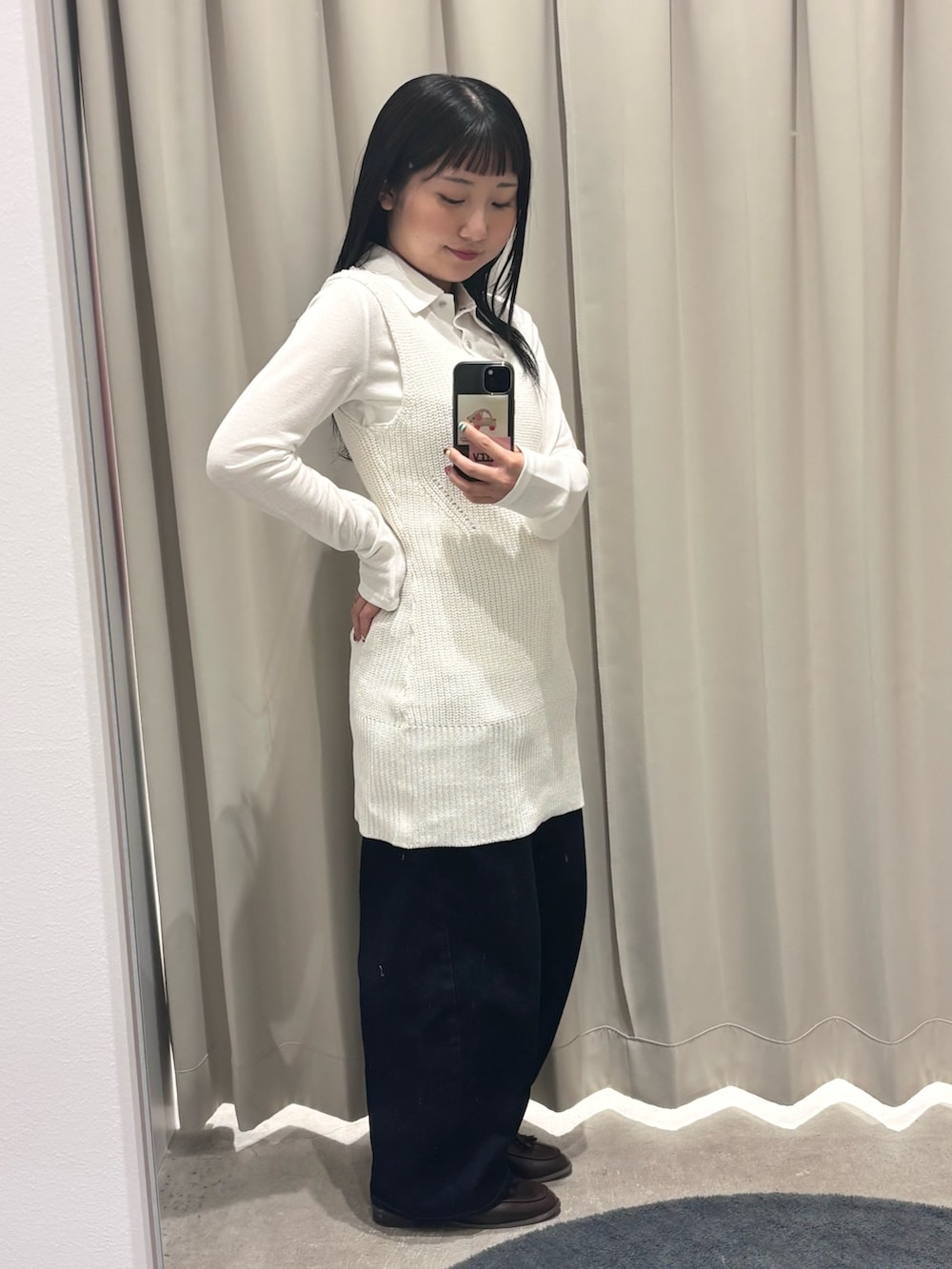 中に着ているシャツは1枚でも着ていただけるのですが、コンパクトめの作りなので、今回のようにベストやキャミワンピース等と組み合わせるのもとっても可愛いくて、相性抜群です!