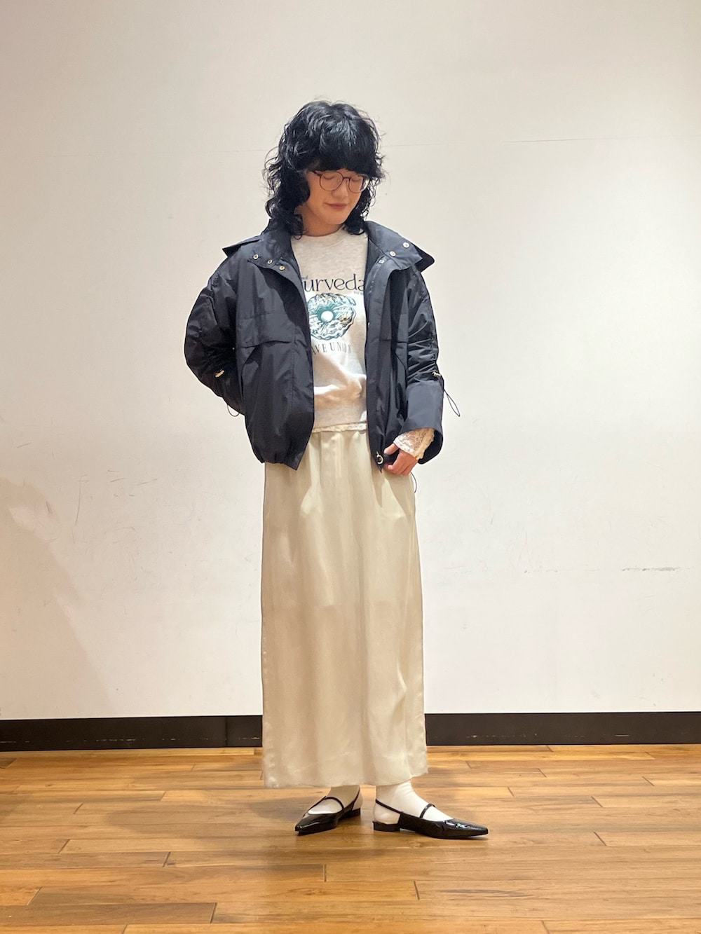 程よい光沢感がスウェットと合わせたコーディネートでも少し女性らしく仕上げてくれます◎