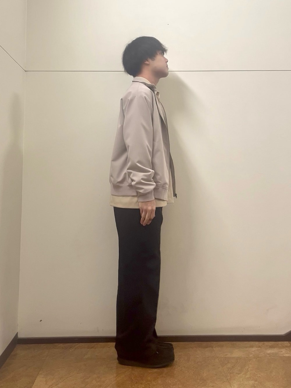 ジャケットは身幅は程よくゆったりめで、丈は短めなのでレイヤードしやすくなっています!