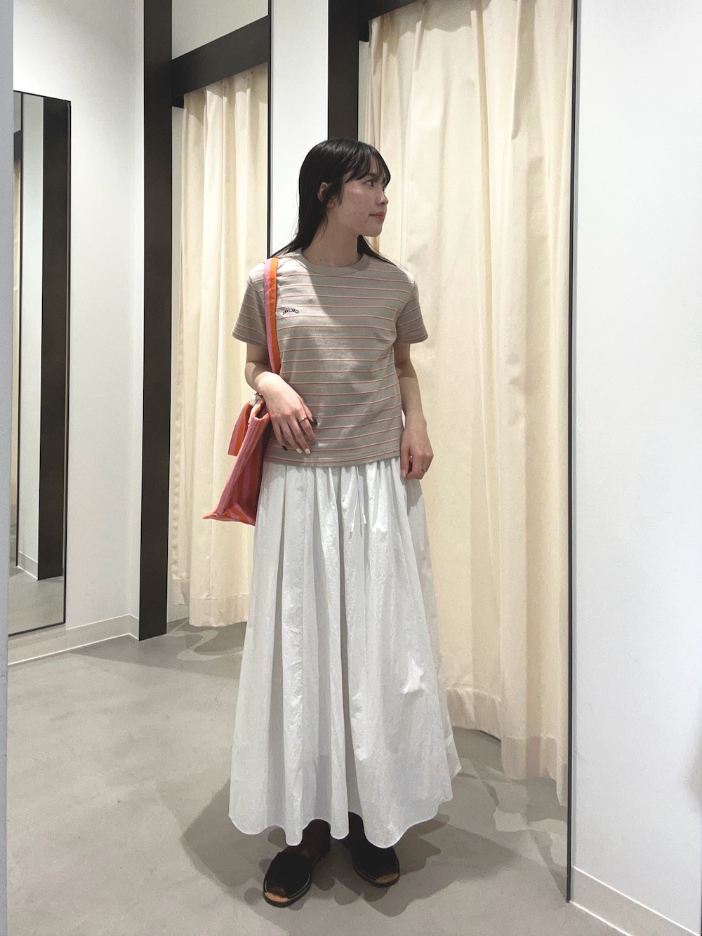 赤ボーダーはネイビーやブラックに比べると抵抗がある方もいらっしゃると思いますが、今回着用のボーダーTは線が細く主張が激しすぎないので入門にも自信を持ってお勧めできる1枚です^_^