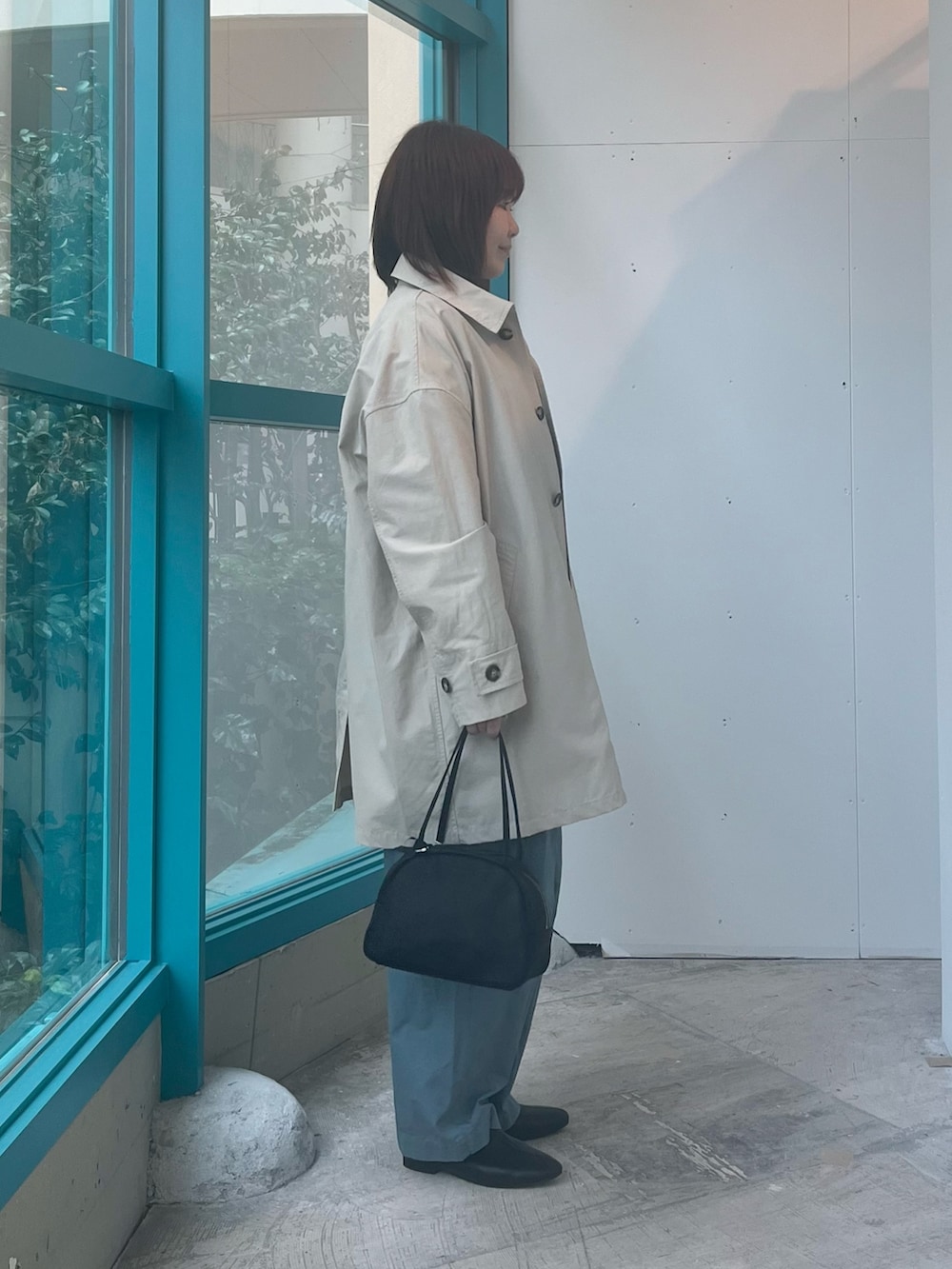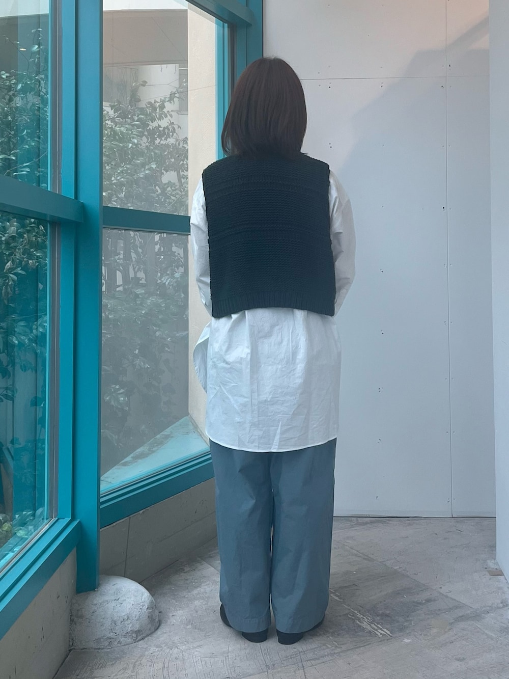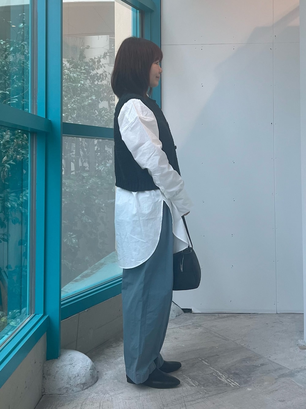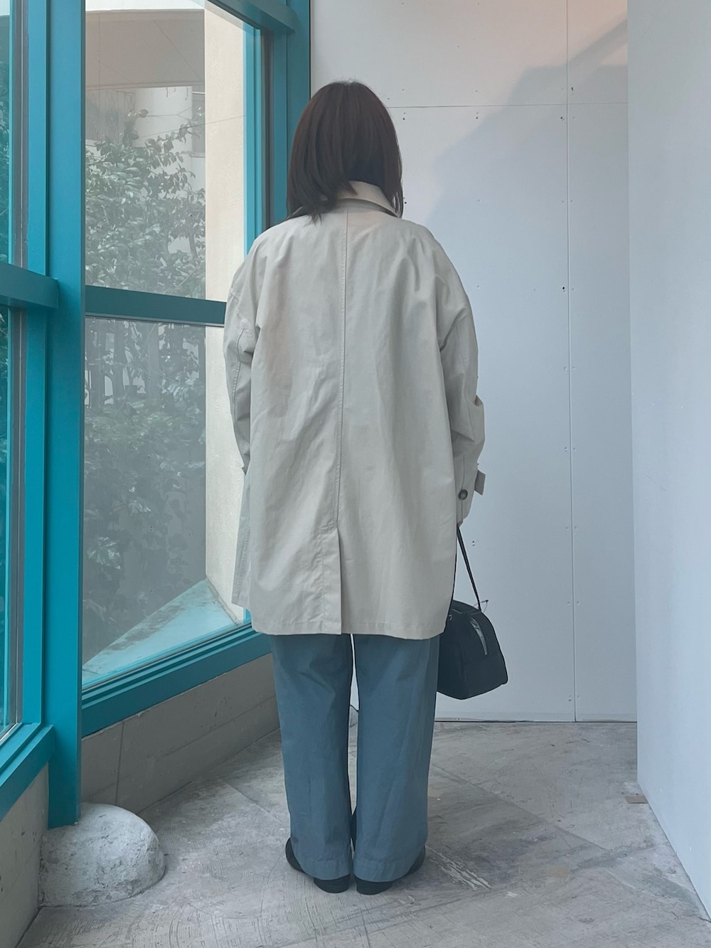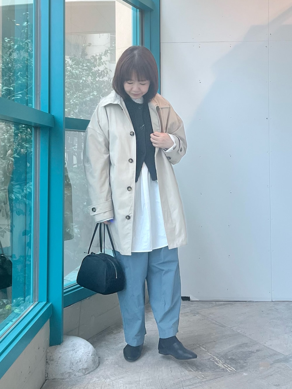 159cmで、今回は紐を結ばず少し腰穿きに。コートを合わせたスタイルではウエスト位置で紐を結び、バランスを変えてみました。