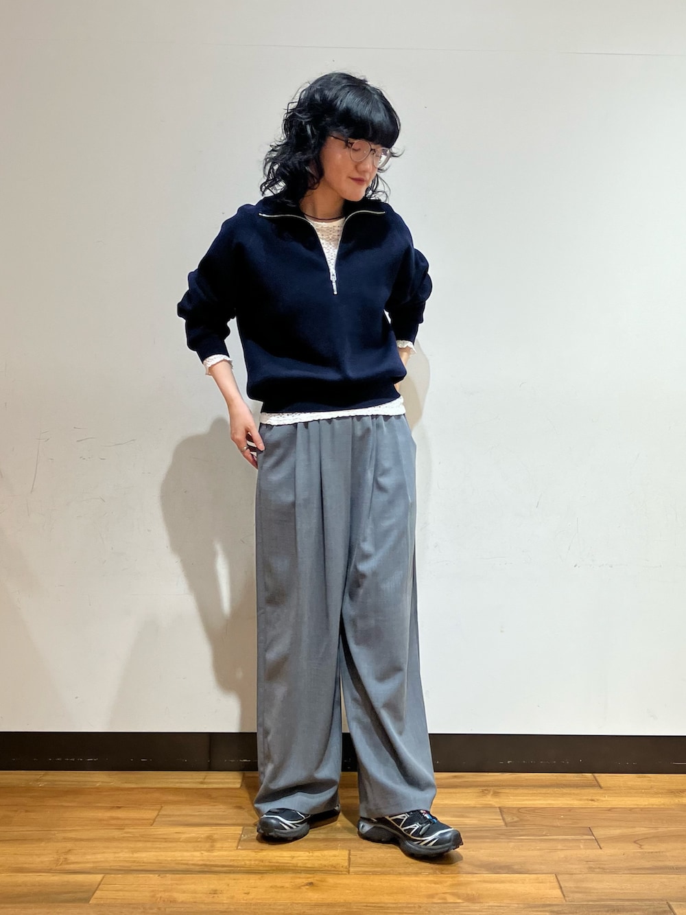 ジップのカジュアルさもありつつ、ニットで綺麗さも残した1枚✨️