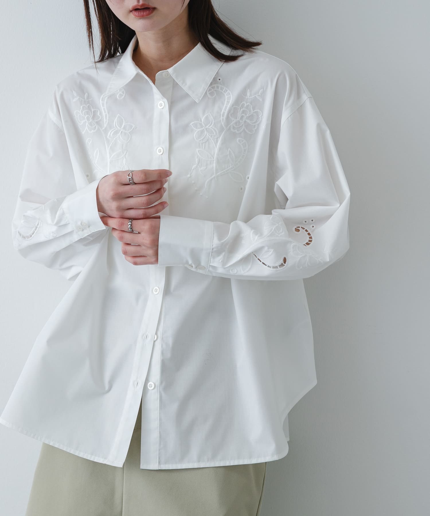 SENSE OF PLACEカットワークエンブロイダリーシャツ- カラー: