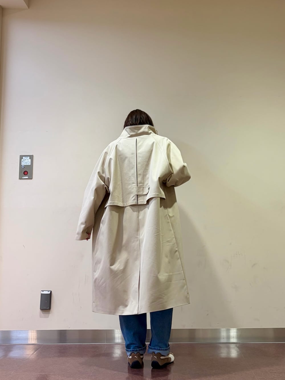 ロングのスタンドカラーコートは撥水加工でシワになりにくく、扱いやすい生地感でオススメです⭕️