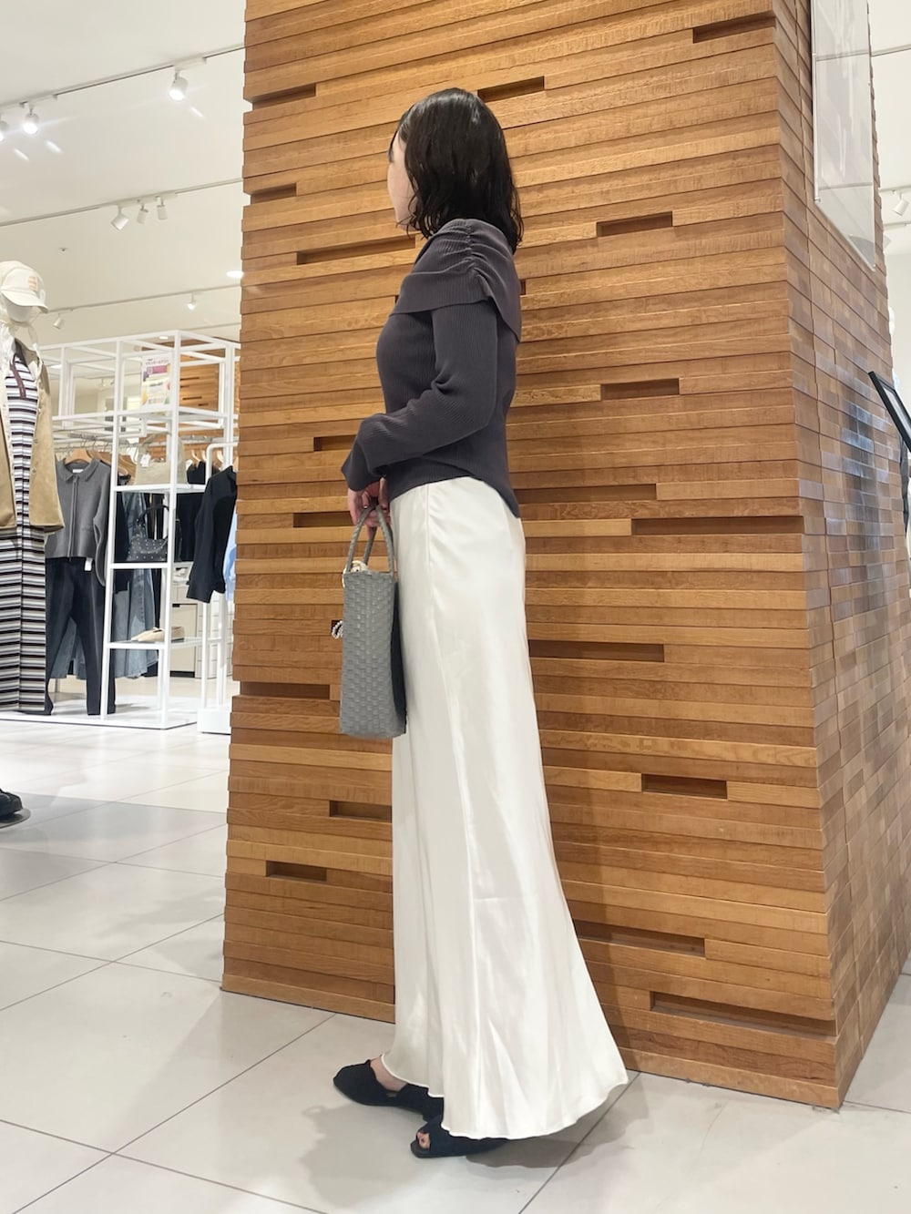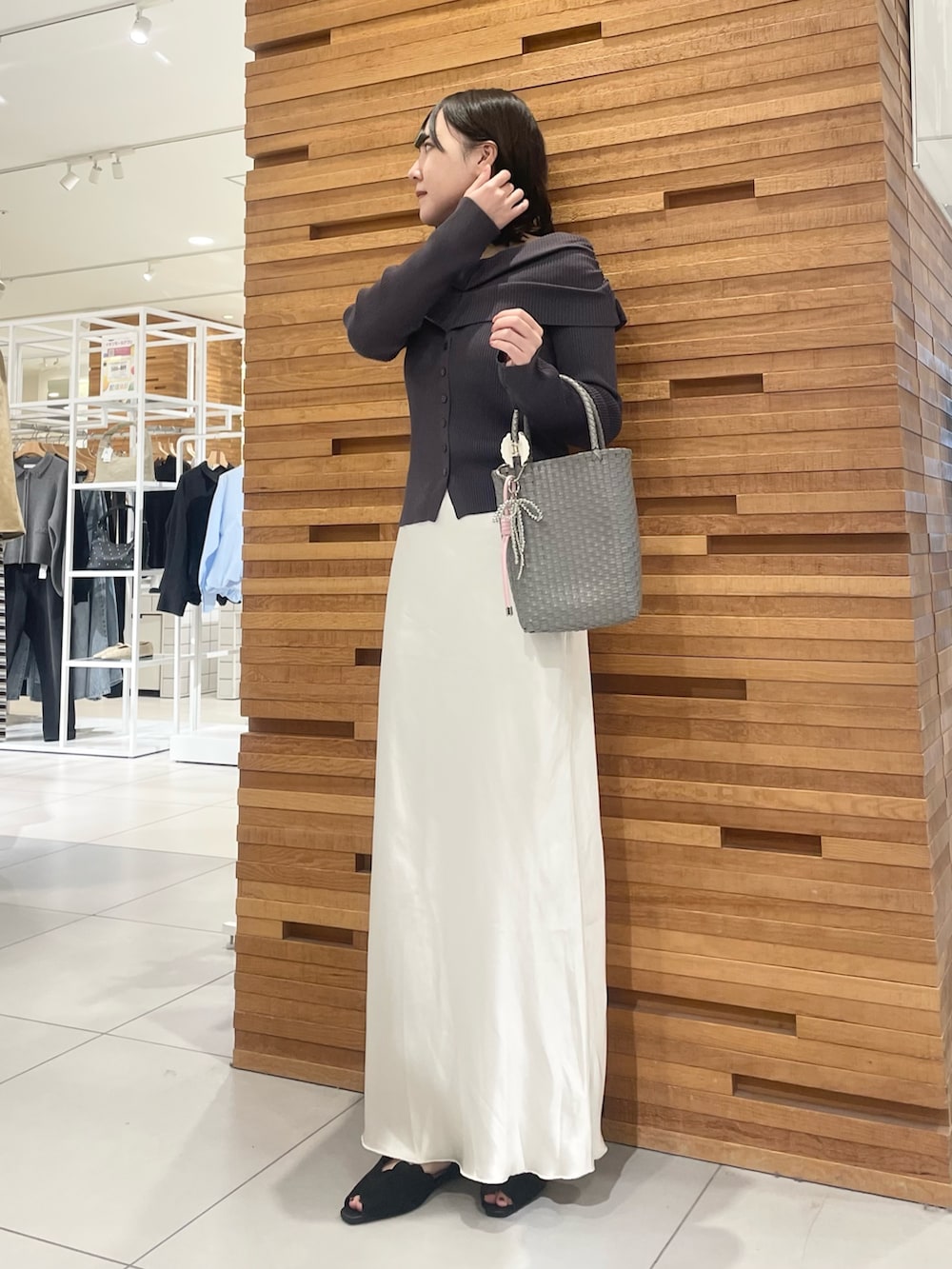今回は春の空気に寄り添う花粉ガード機能を備えた、オフショルニットを着てみました