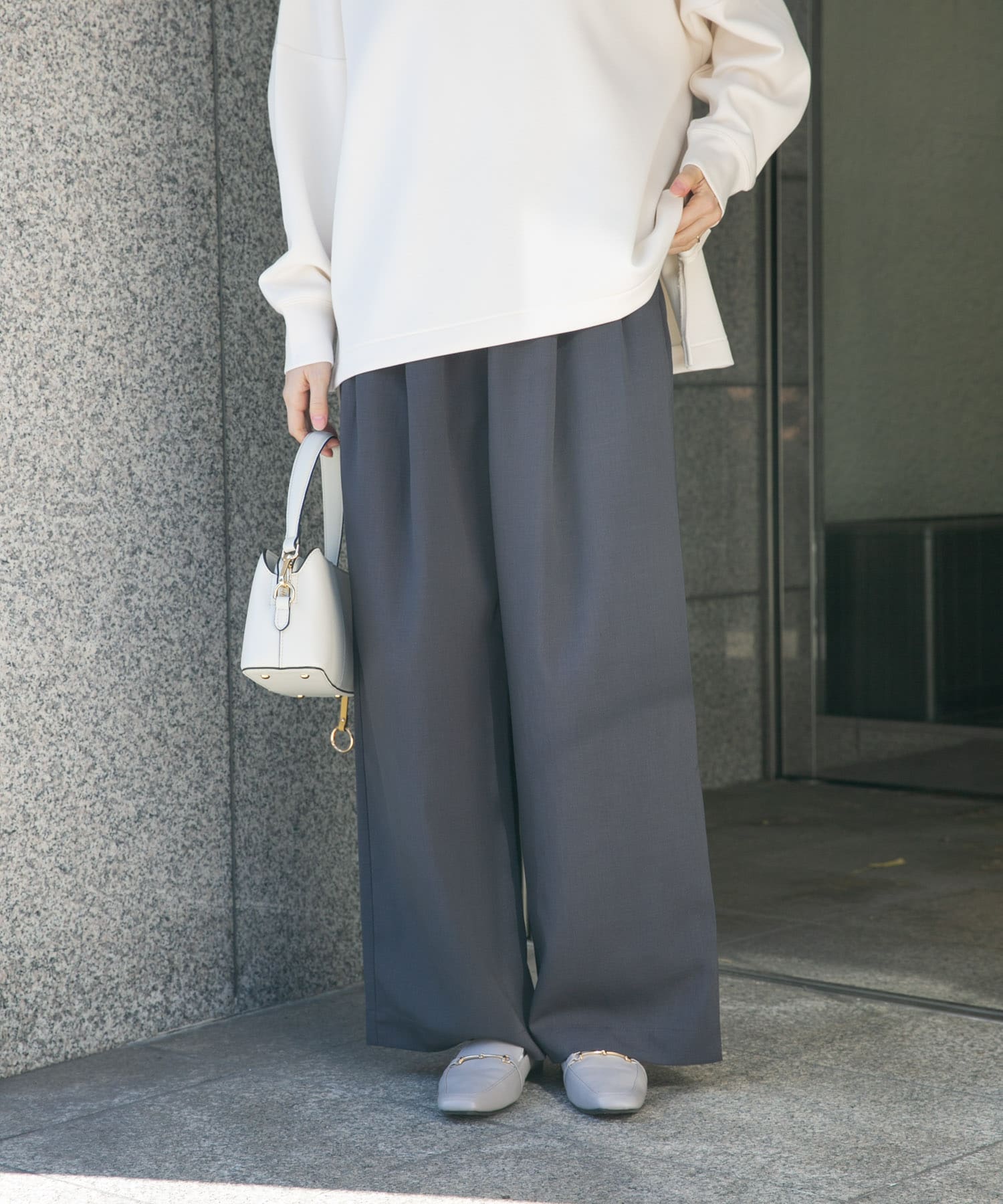 ウエストはゴム紐で調節しやすく、綺麗めにもカジュアルにも使いやすいパンツです。おすすめです🫶🏻