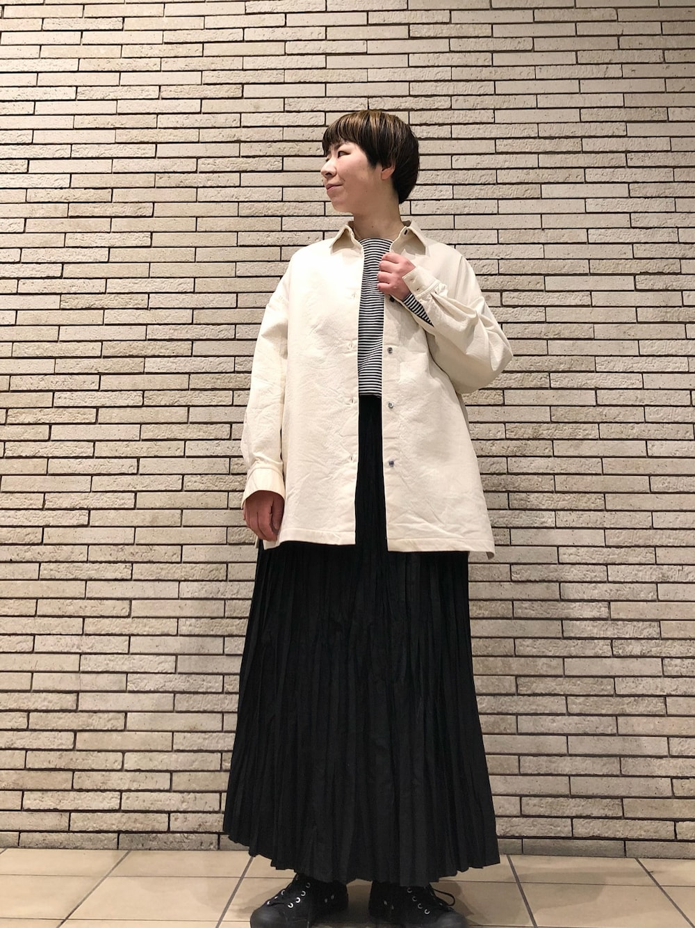 ジャケットのインナーにも活躍しますし、これからの季節は1枚でも雰囲気のある装いに。