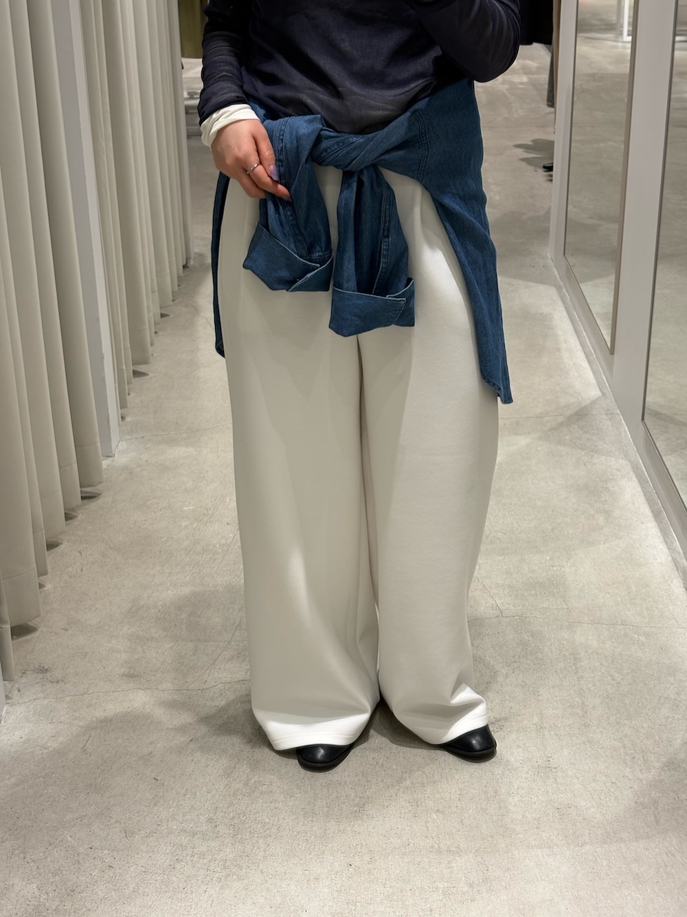 腰巻きにデニムシャツで春っぽさ