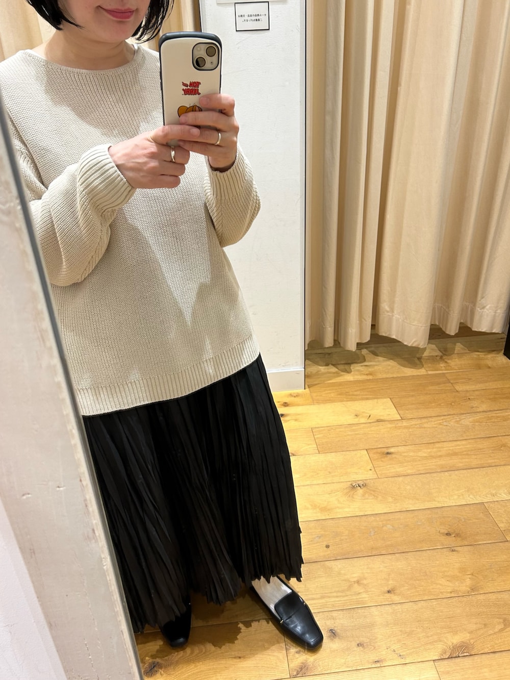 ウールから綿のニットに変えて春らしく。