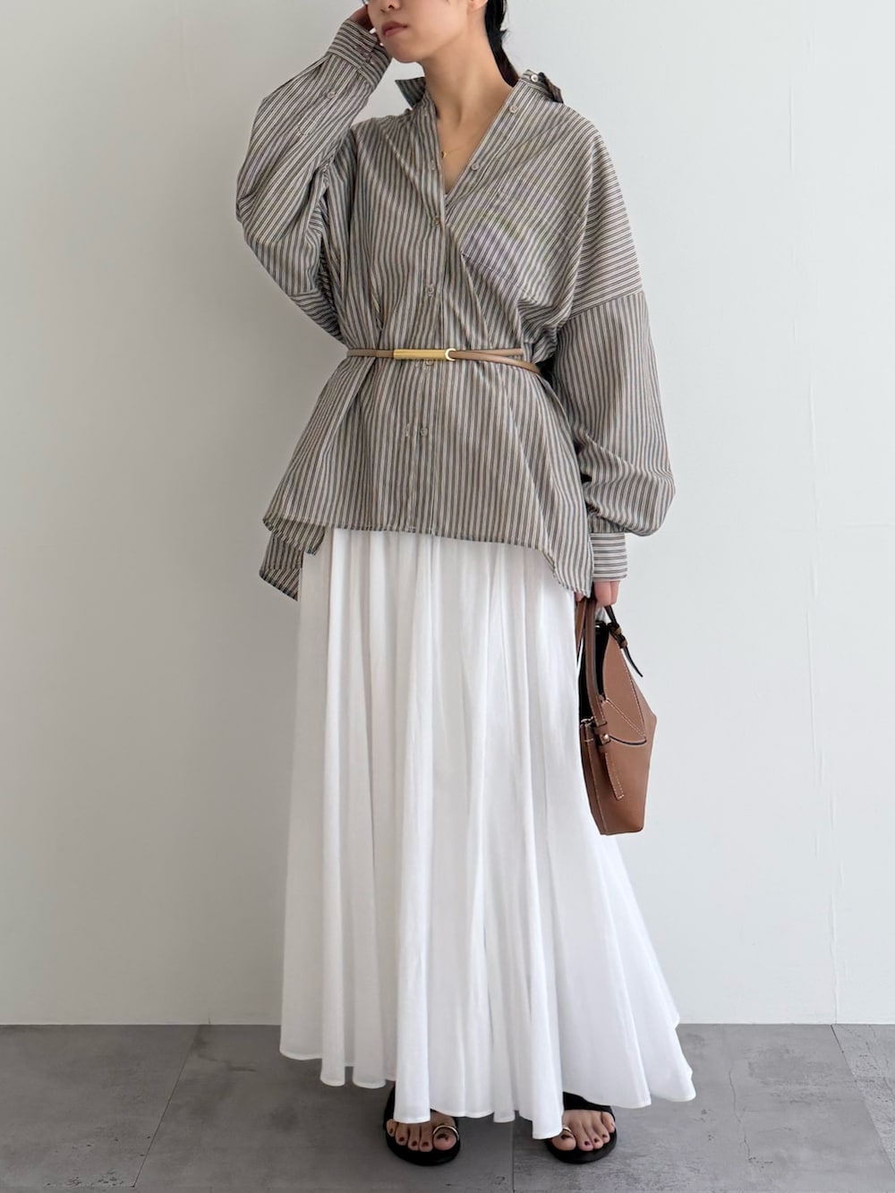フレアスカートと合わせるならベルトをつけるといい感じに着れました!