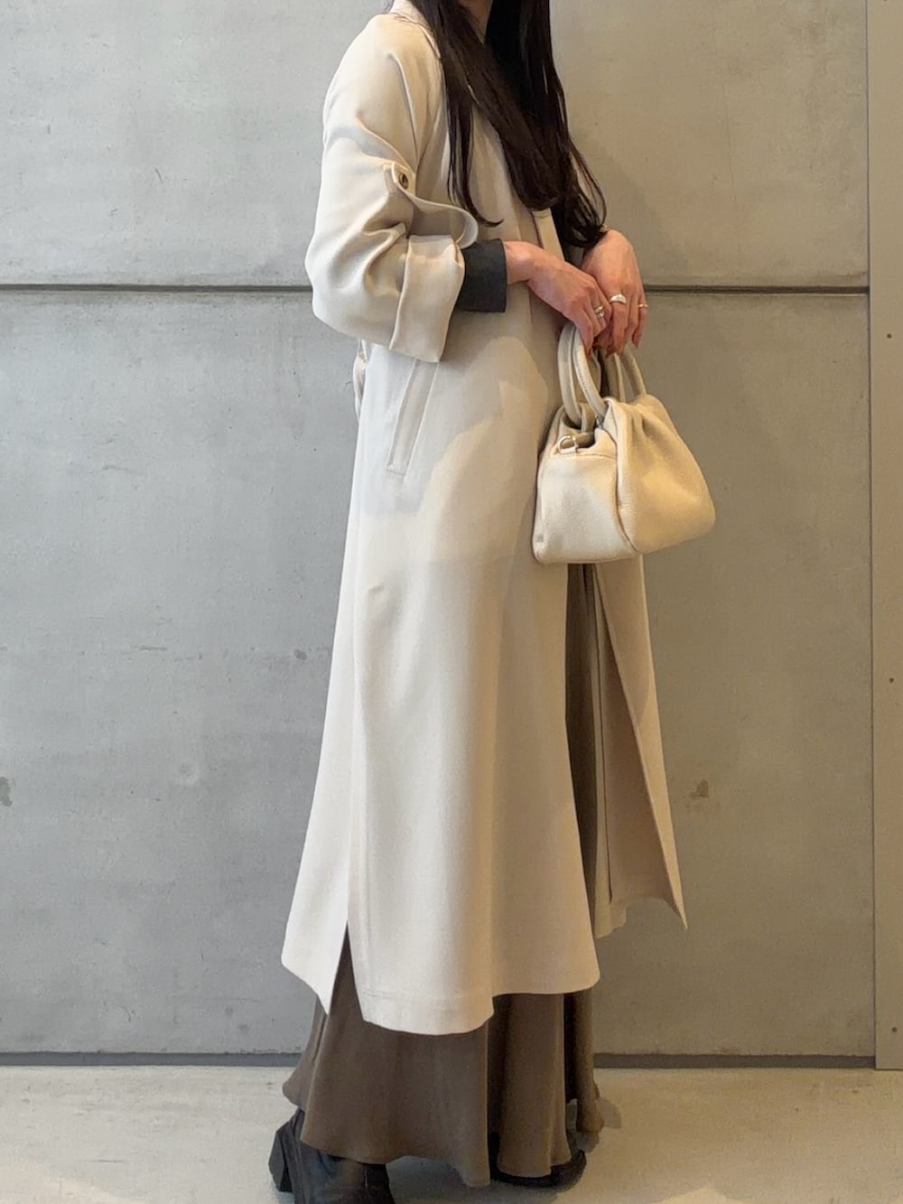 コートは袖をボタンで止めて捲る事ができるので、こなれ感が出て可愛いです✨