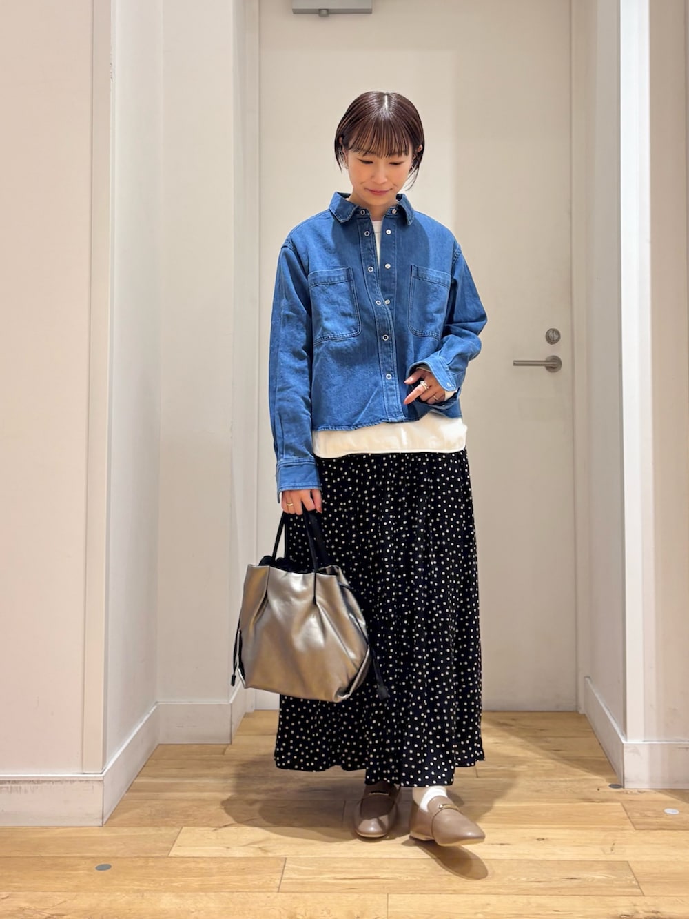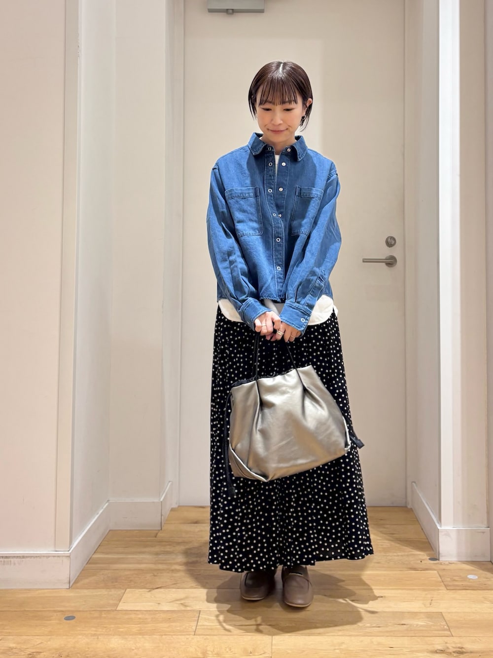 デニムのジャケットよりは軽く、シャツよりは少ししっかりした生地感でアウター代わりにも◎