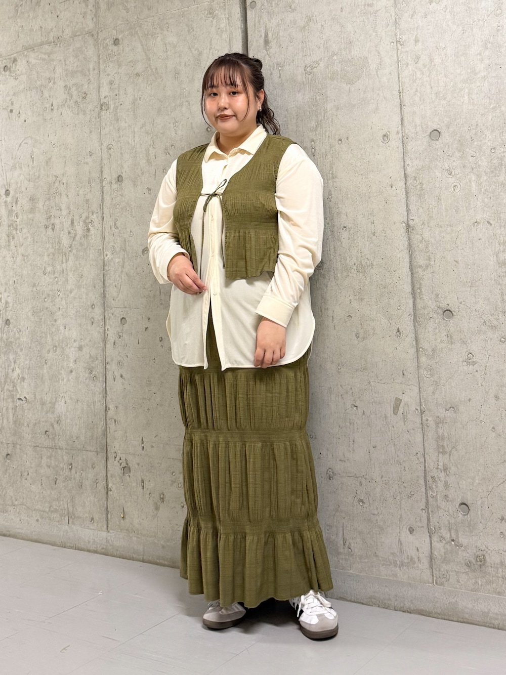 ビスチェはニット素材、トップスはカットソーなので異素材の組み合わせもアクセントになります◎