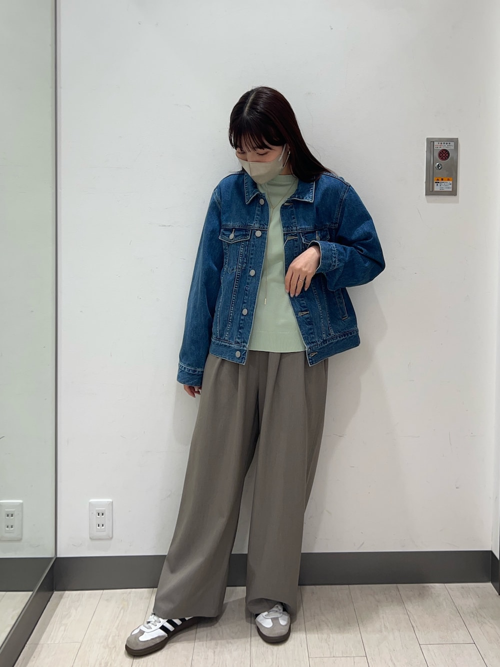 アウターは、デニムジャケットを