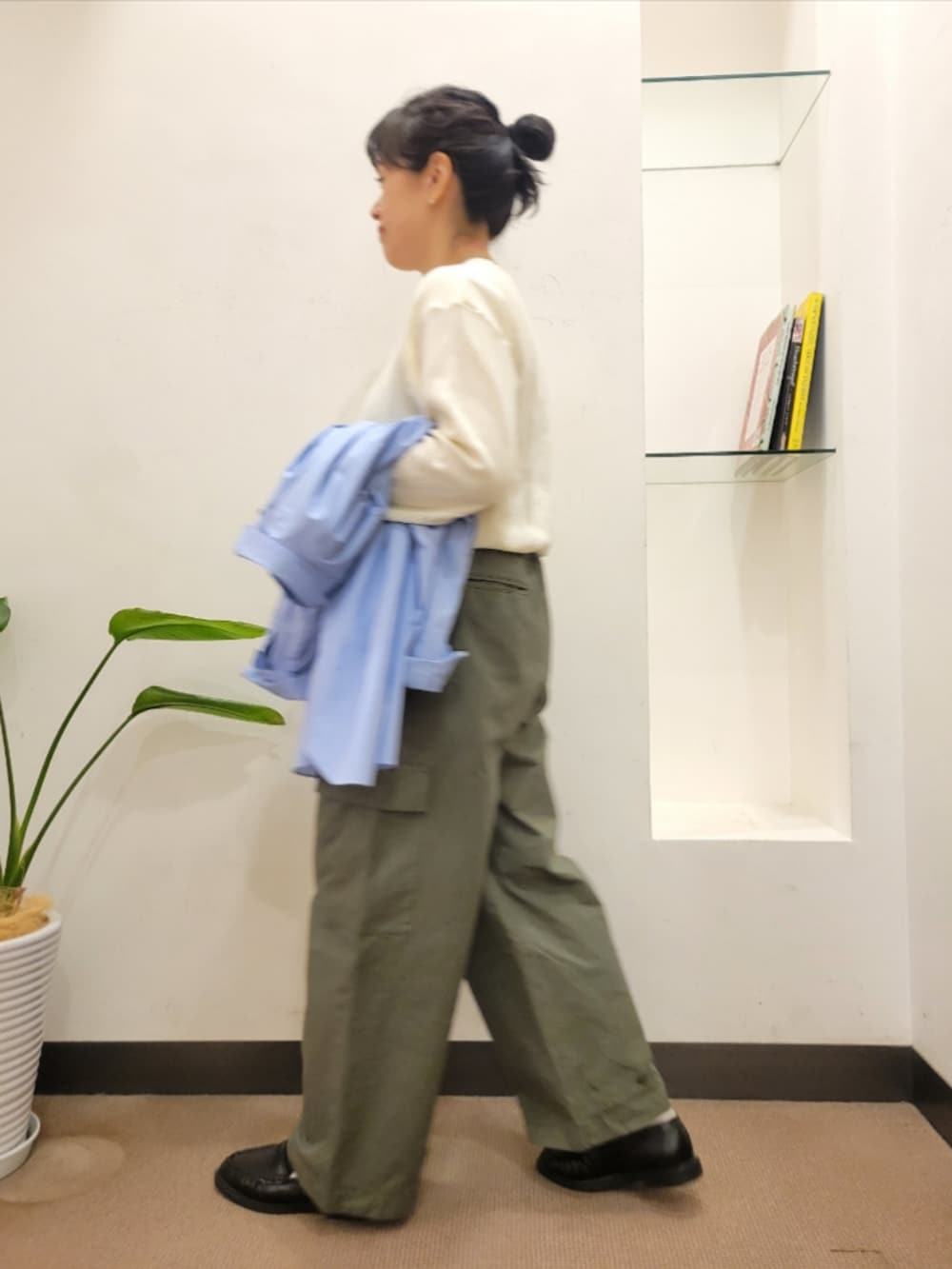 シャツはゆったりで着丈長めで
